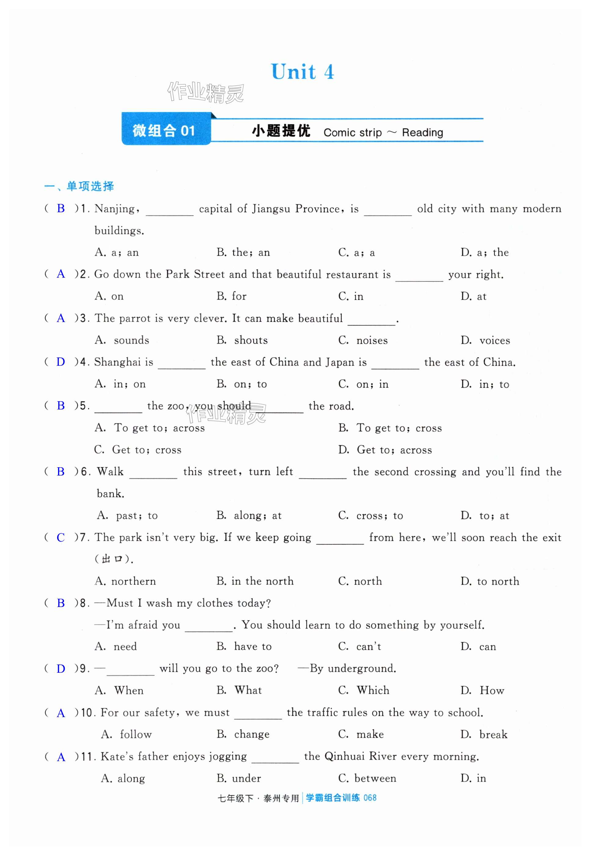 注:目前有些书本章节名称可能整理的还不是很完善,但都是按照顺序排列的,请同学们按照顺序仔细查找。练习册 2024年学霸组合训练七年级英语下册译林版泰州专版 答案主要是用来给同学们做完题方便对答案用的,请勿直接抄袭。
