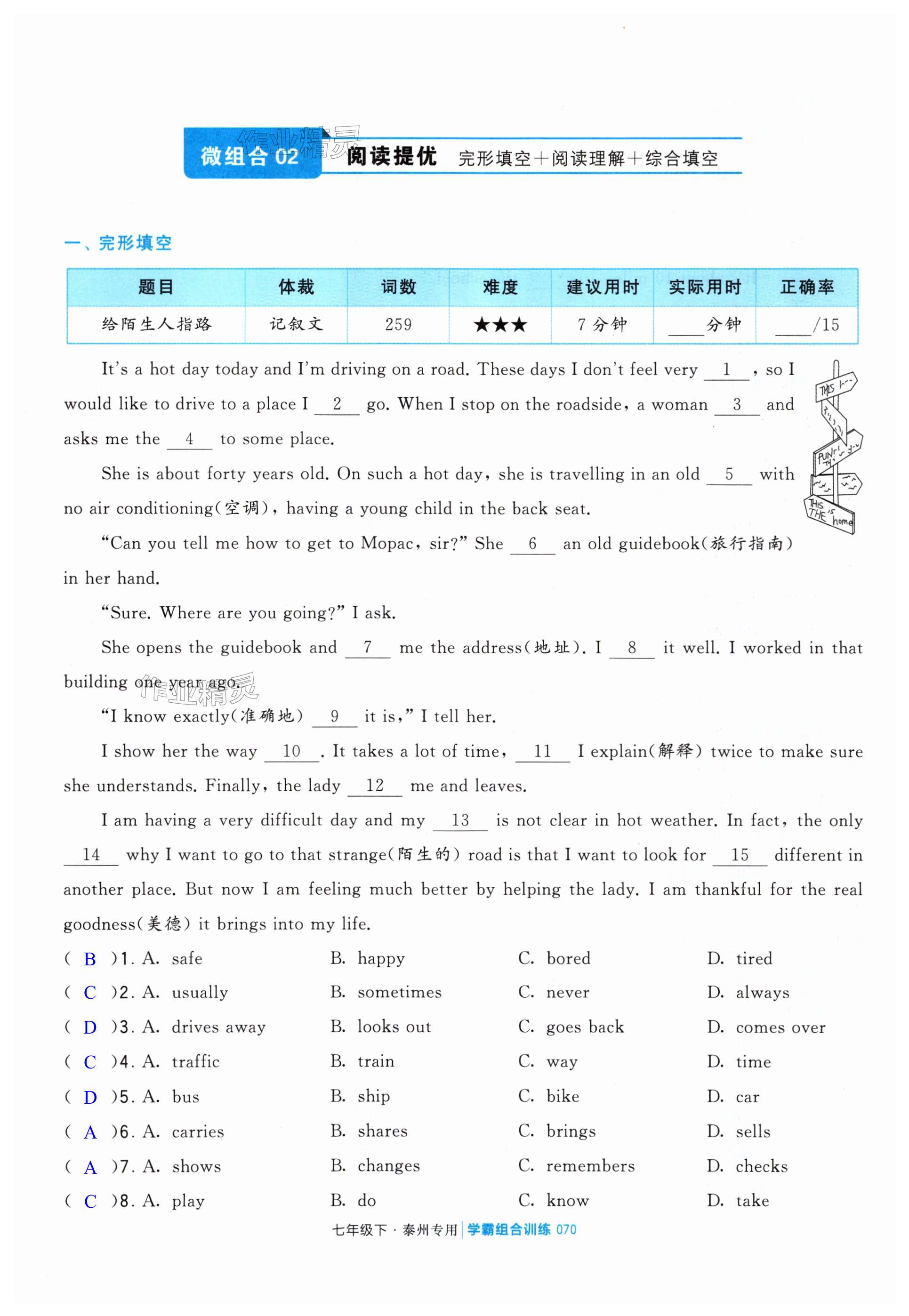 注:目前有些书本章节名称可能整理的还不是很完善,但都是按照顺序排列的,请同学们按照顺序仔细查找。练习册 2024年学霸组合训练七年级英语下册译林版泰州专版 答案主要是用来给同学们做完题方便对答案用的,请勿直接抄袭。