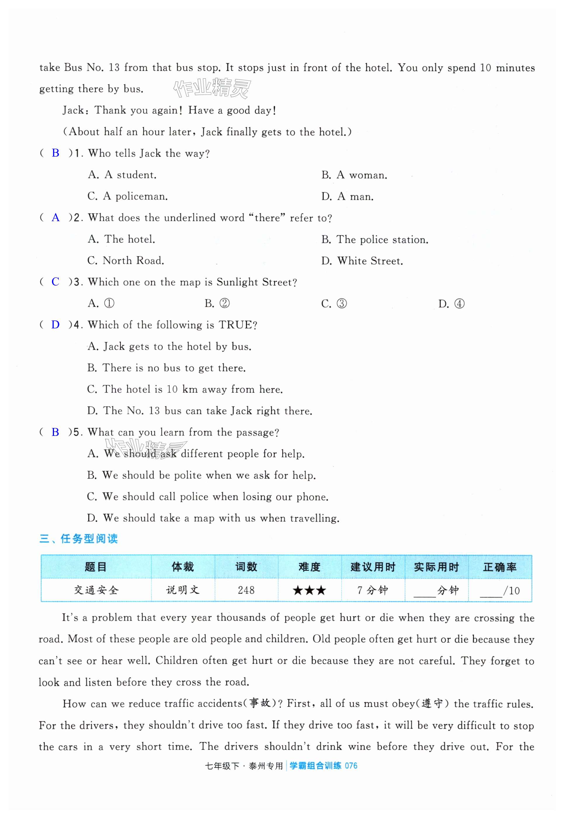 注:目前有些书本章节名称可能整理的还不是很完善,但都是按照顺序排列的,请同学们按照顺序仔细查找。练习册 2024年学霸组合训练七年级英语下册译林版泰州专版 答案主要是用来给同学们做完题方便对答案用的,请勿直接抄袭。