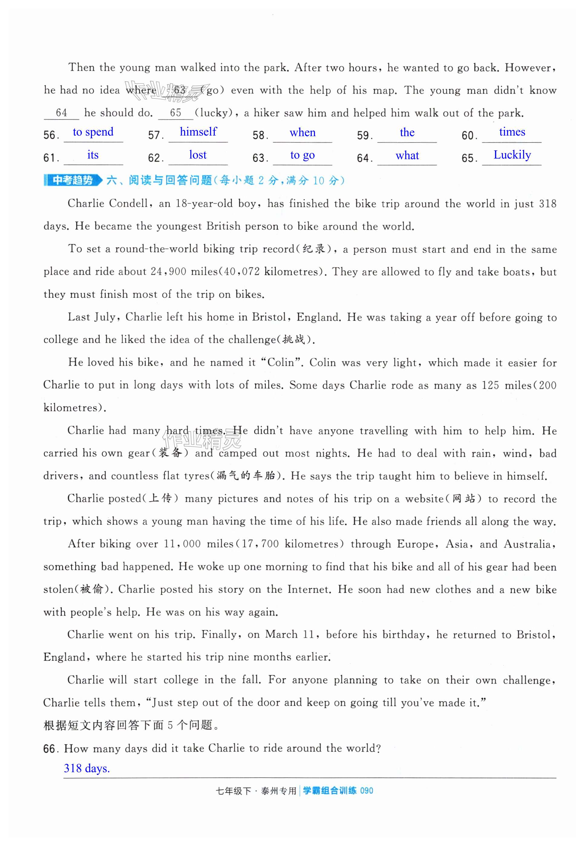 2024年学霸组合训练七年级英语下册译林版泰州专版