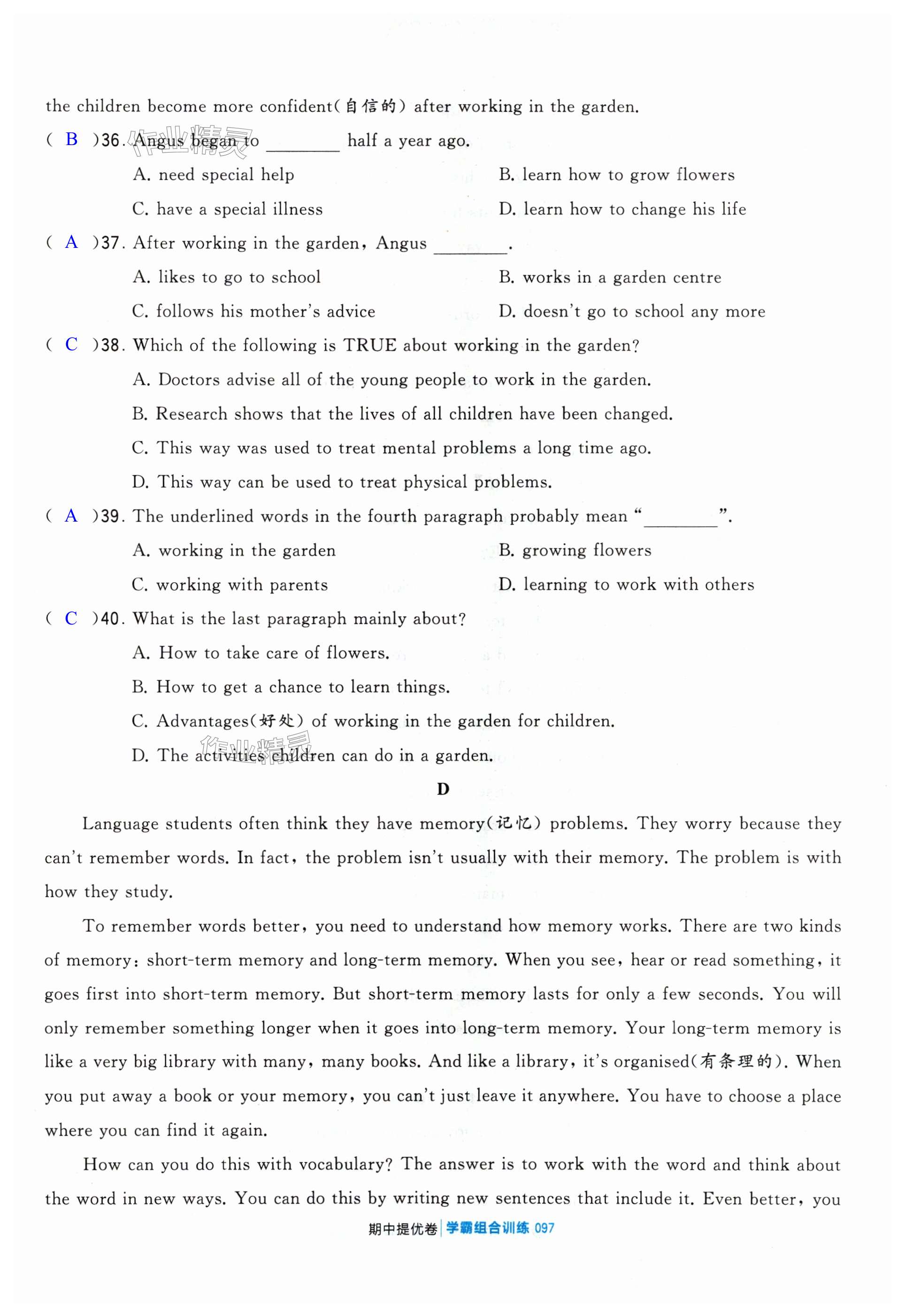 注:目前有些书本章节名称可能整理的还不是很完善,但都是按照顺序排列的,请同学们按照顺序仔细查找。练习册 2024年学霸组合训练七年级英语下册译林版泰州专版 答案主要是用来给同学们做完题方便对答案用的,请勿直接抄袭。