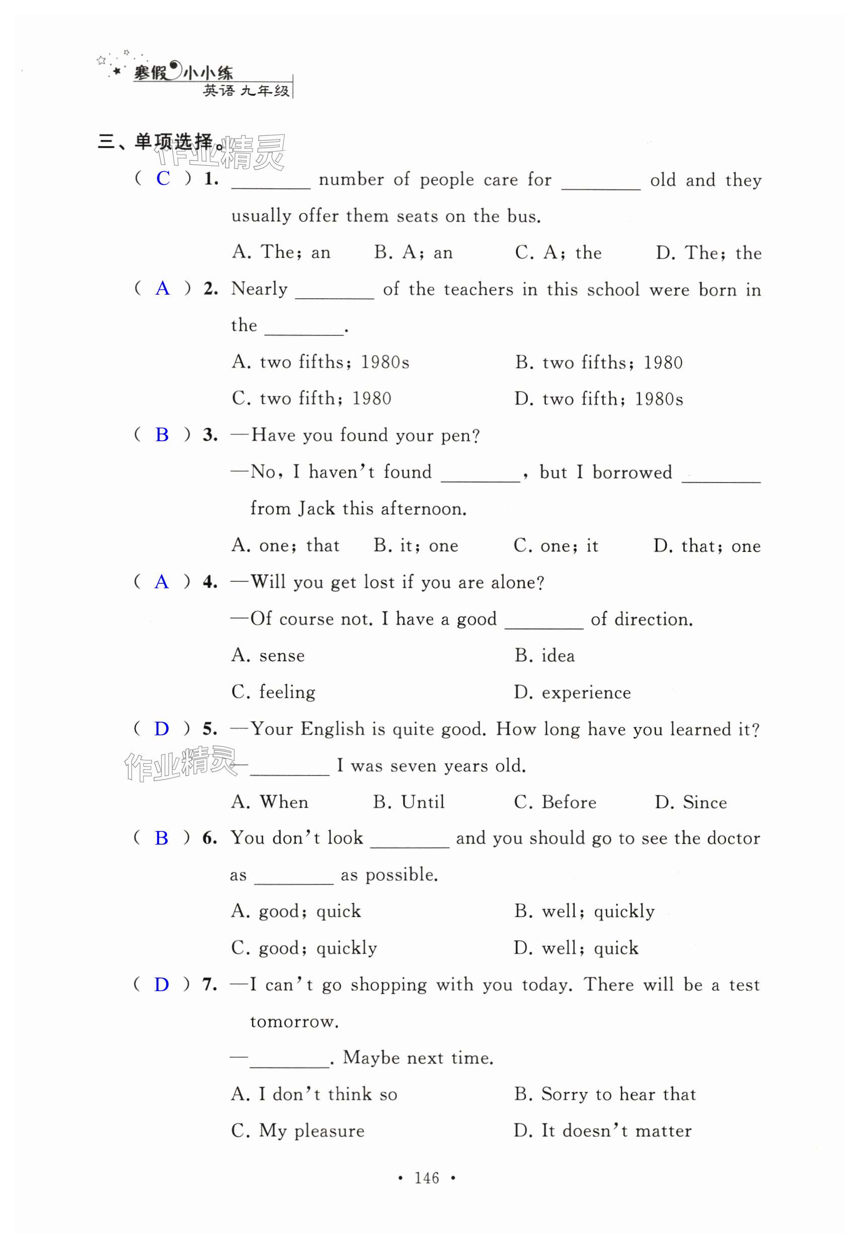 注:目前有些书本章节名称可能整理的还不是很完善,但都是按照顺序排列的,请同学们按照顺序仔细查找。练习册 2024年寒假小小练九年级语文数学英语物理化学合订本 答案主要是用来给同学们做完题方便对答案用的,请勿直接抄袭。