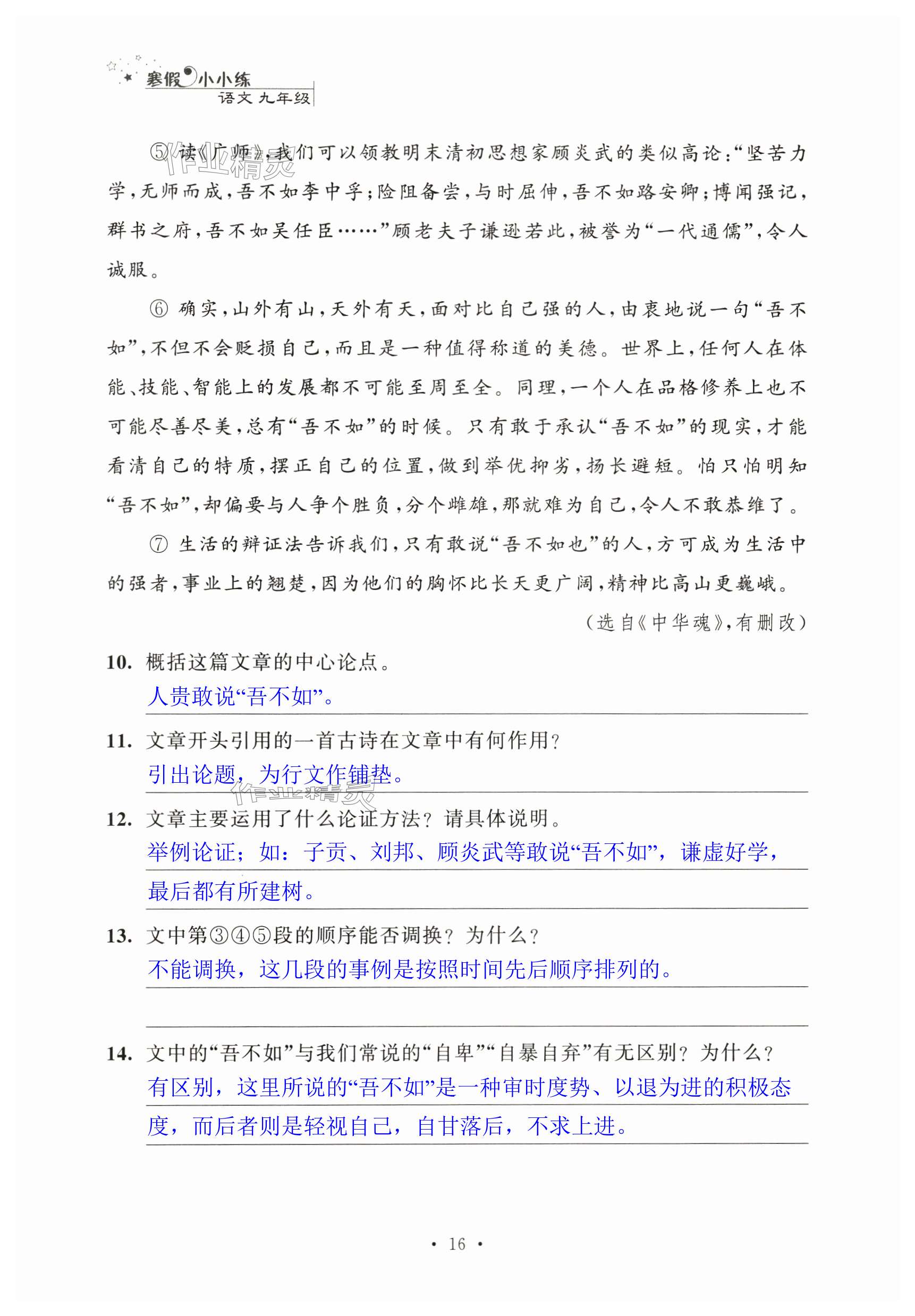 注:目前有些书本章节名称可能整理的还不是很完善,但都是按照顺序排列的,请同学们按照顺序仔细查找。练习册 2024年寒假小小练九年级语文数学英语物理化学合订本 答案主要是用来给同学们做完题方便对答案用的,请勿直接抄袭。