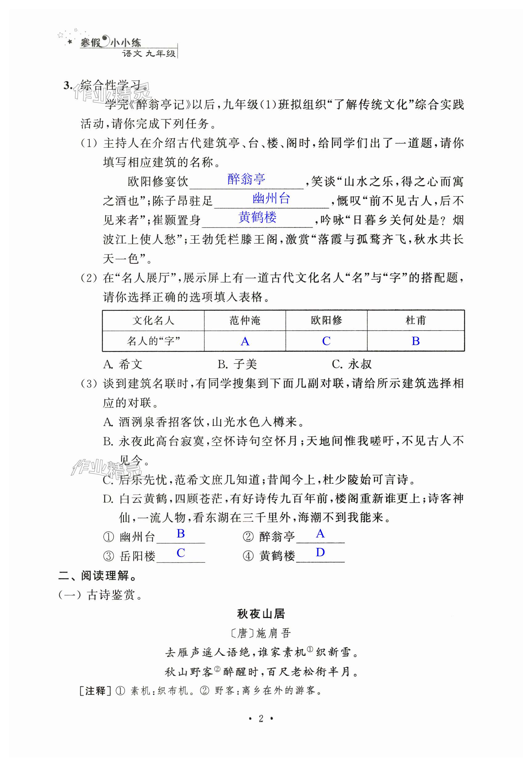 注:目前有些书本章节名称可能整理的还不是很完善,但都是按照顺序排列的,请同学们按照顺序仔细查找。练习册 2024年寒假小小练九年级语文数学英语物理化学合订本 答案主要是用来给同学们做完题方便对答案用的,请勿直接抄袭。