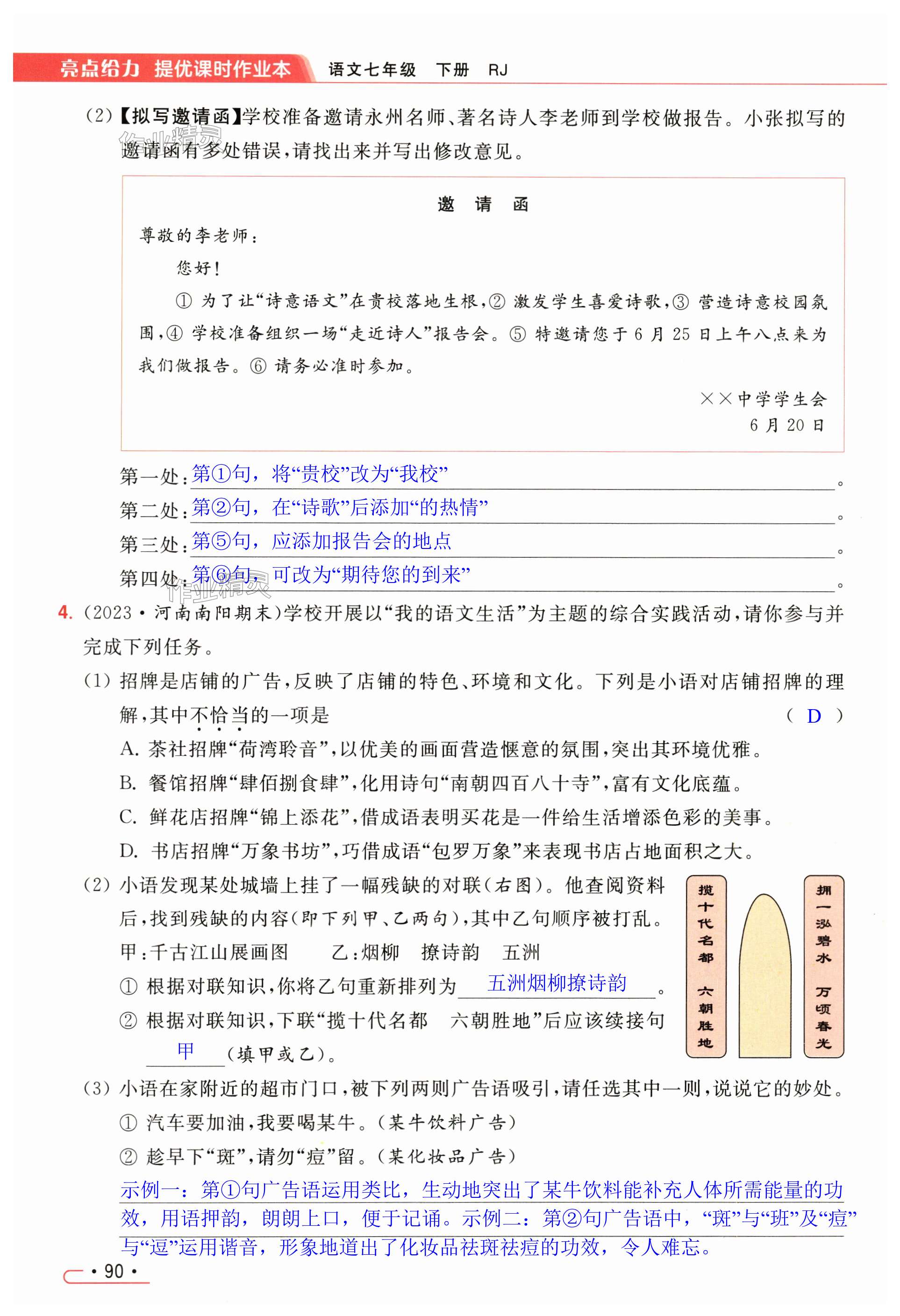 2024年亮点给力提优课时作业本七年级语文下册人教版