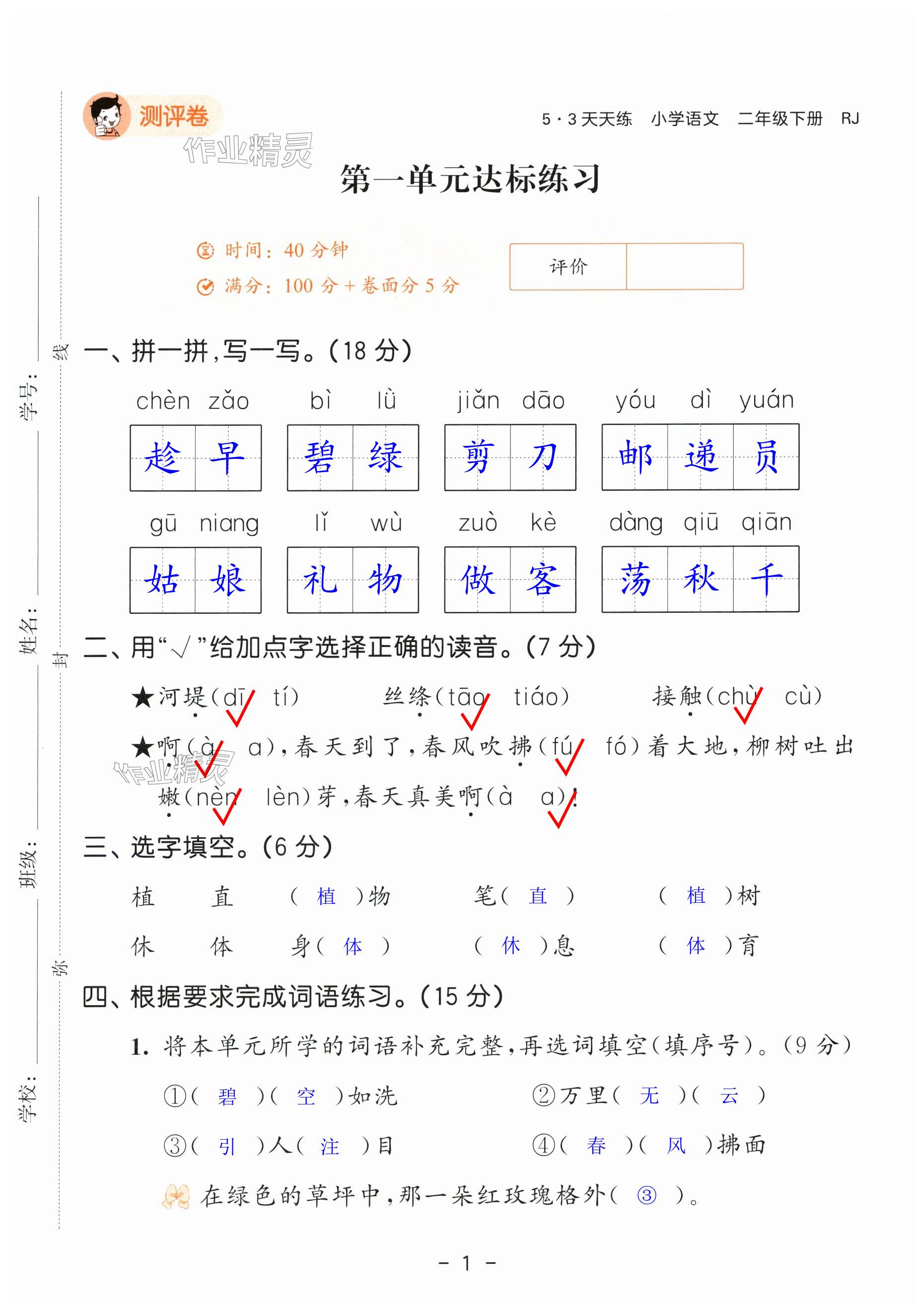 注:目前有些书本章节名称可能整理的还不是很完善,但都是按照顺序排列的,请同学们按照顺序仔细查找。练习册 2024年53天天练二年级语文下册人教版 答案主要是用来给同学们做完题方便对答案用的,请勿直接抄袭。