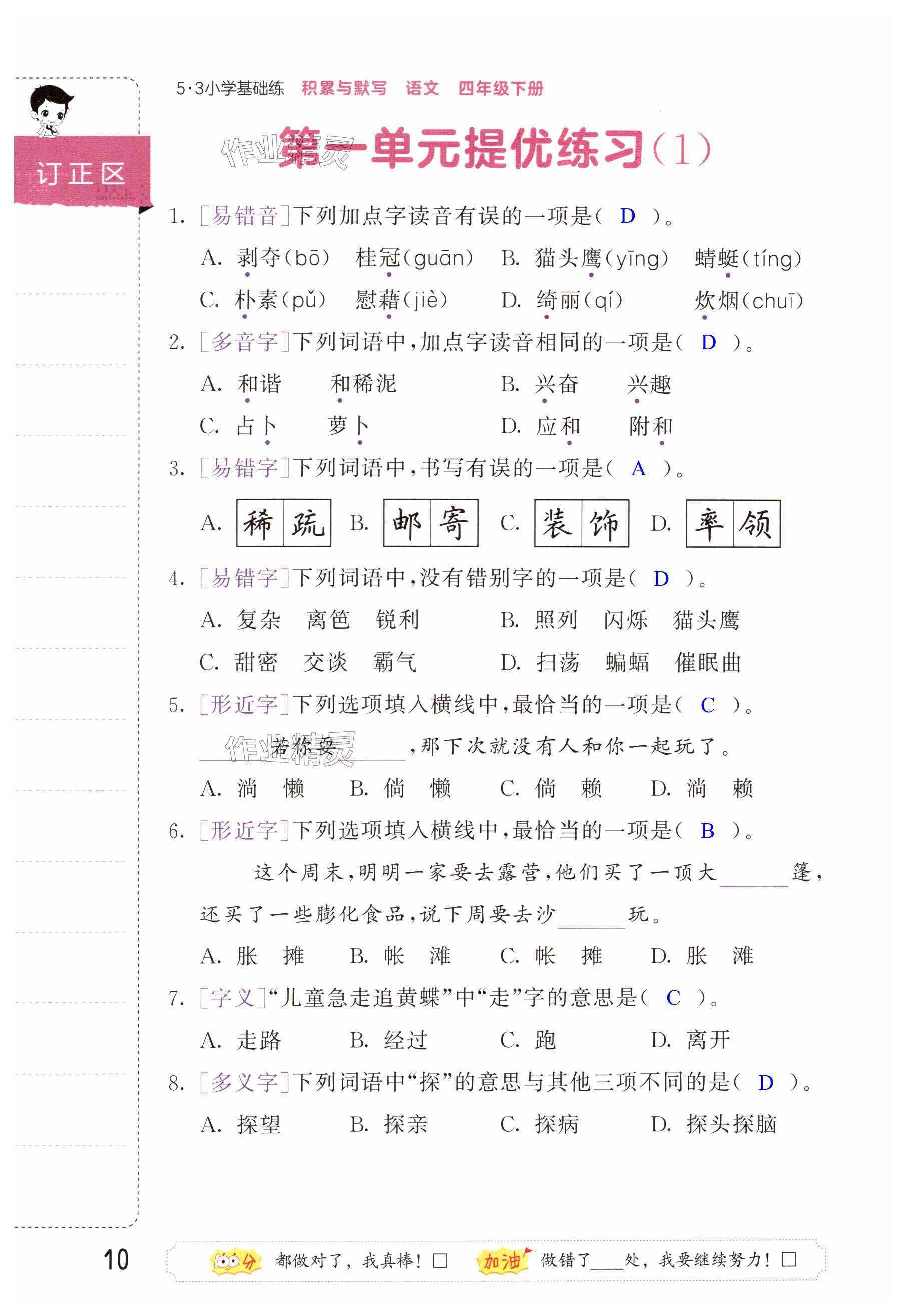 注:目前有些书本章节名称可能整理的还不是很完善,但都是按照顺序排列的,请同学们按照顺序仔细查找。练习册 2024年积累与默写首都师范大学出版社四年级语文下册人教版 答案主要是用来给同学们做完题方便对答案用的,请勿直接抄袭。