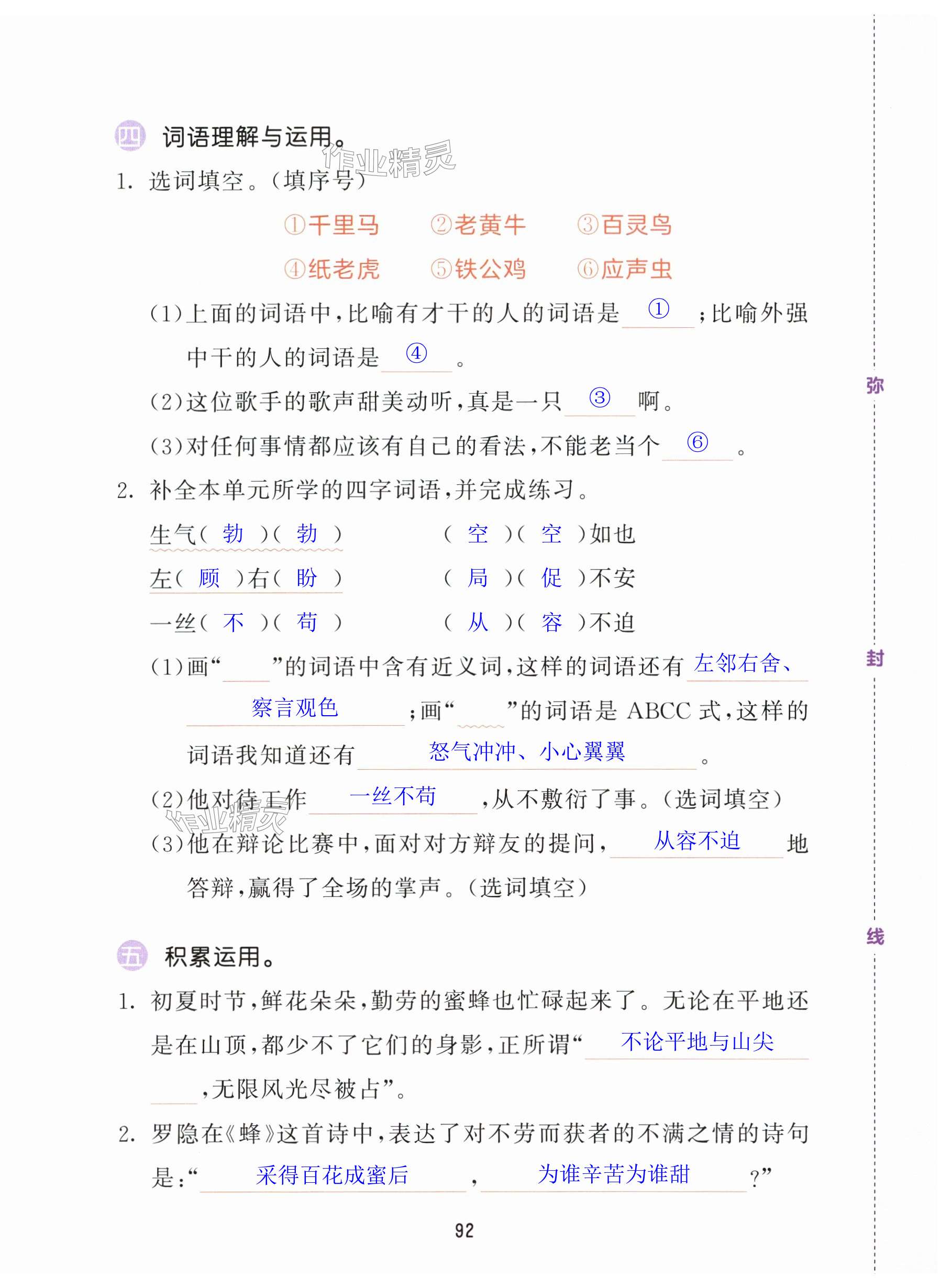 注:目前有些书本章节名称可能整理的还不是很完善,但都是按照顺序排列的,请同学们按照顺序仔细查找。练习册 2024年积累与默写首都师范大学出版社四年级语文下册人教版 答案主要是用来给同学们做完题方便对答案用的,请勿直接抄袭。