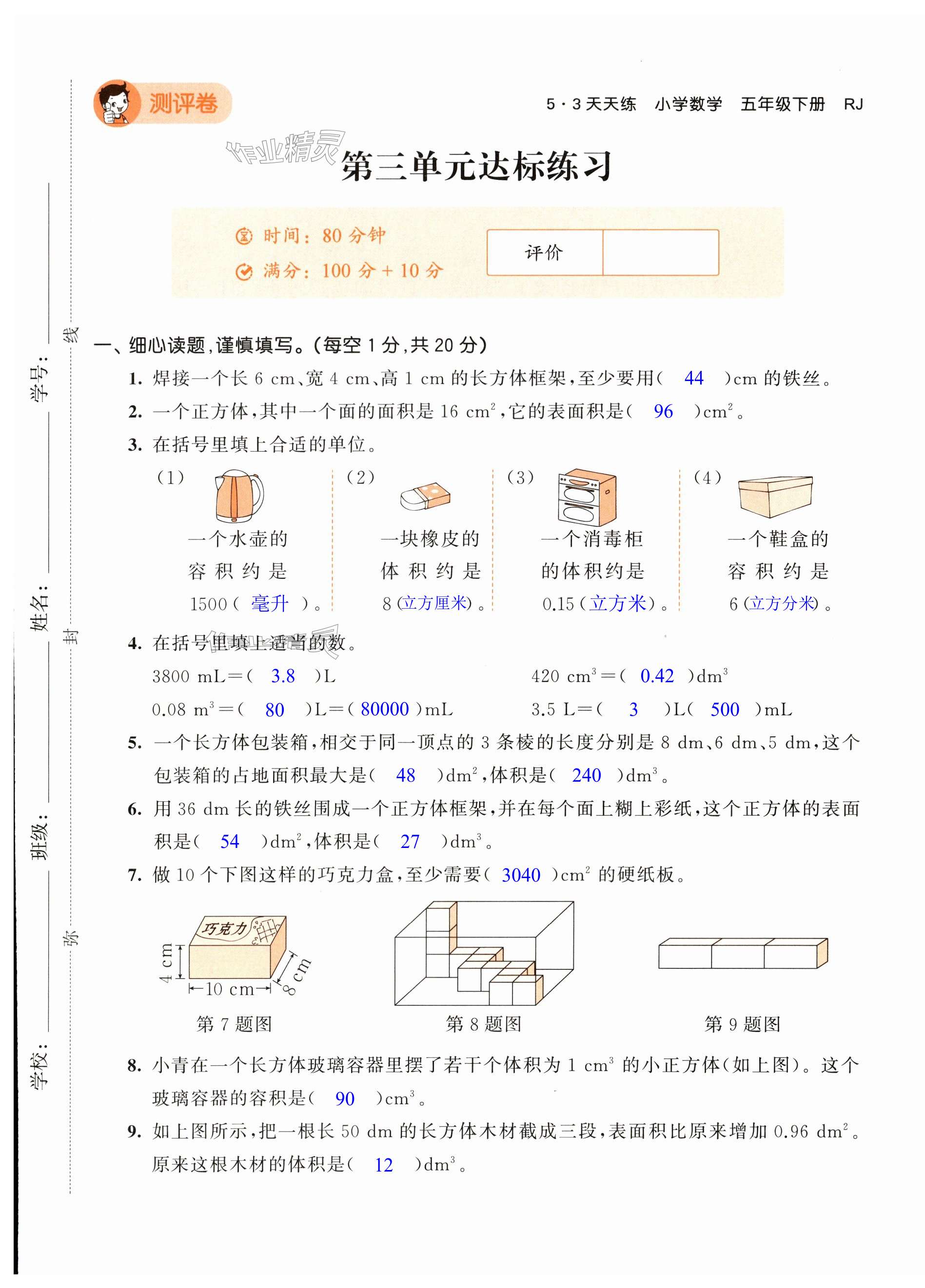 注:目前有些书本章节名称可能整理的还不是很完善,但都是按照顺序排列的,请同学们按照顺序仔细查找。练习册 2024年53天天练五年级数学下册人教版 答案主要是用来给同学们做完题方便对答案用的,请勿直接抄袭。