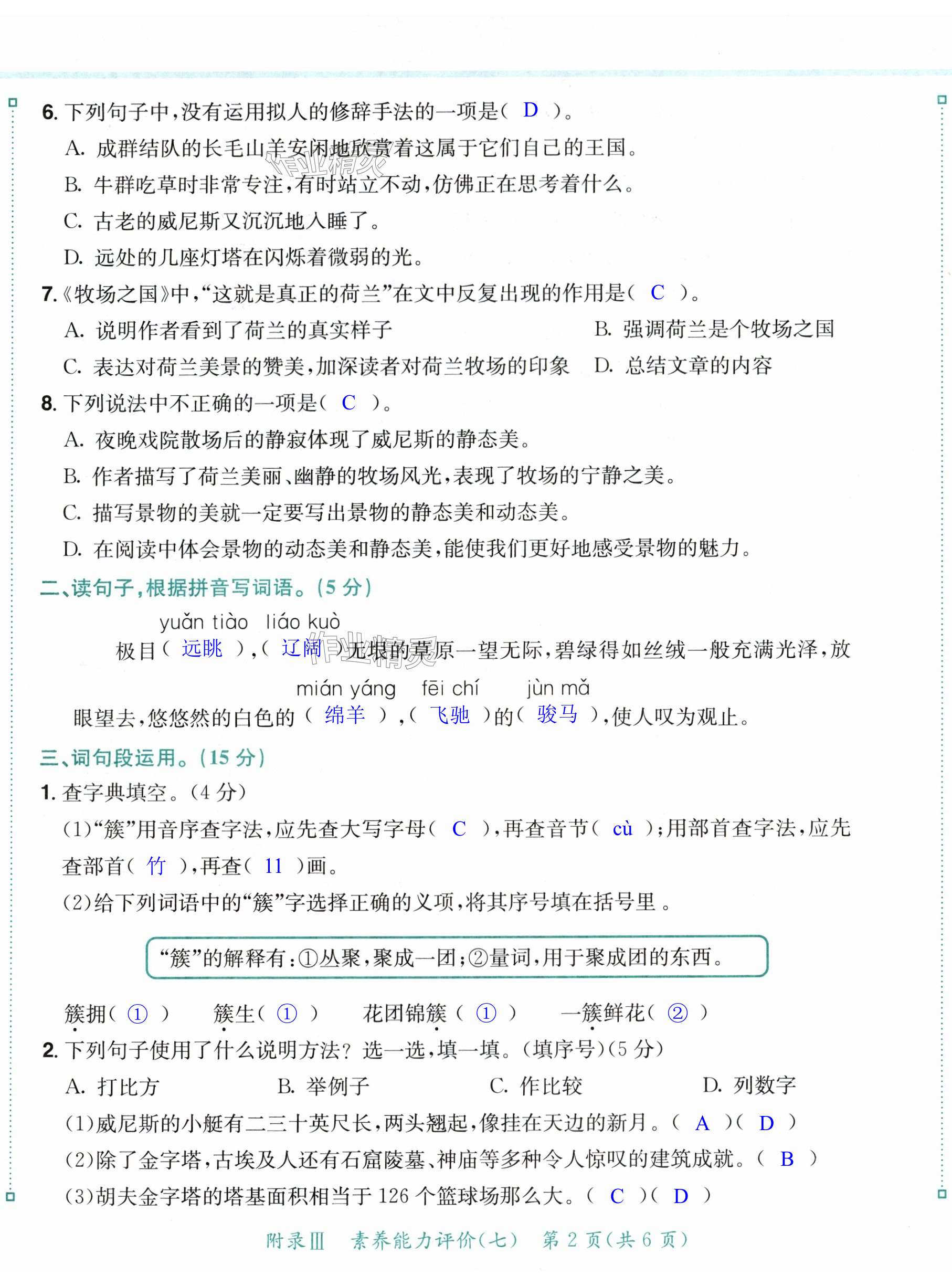 注:目前有些书本章节名称可能整理的还不是很完善,但都是按照顺序排列的,请同学们按照顺序仔细查找。练习册 2024年黄冈小状元练重点五年级语文下册人教版 答案主要是用来给同学们做完题方便对答案用的,请勿直接抄袭。