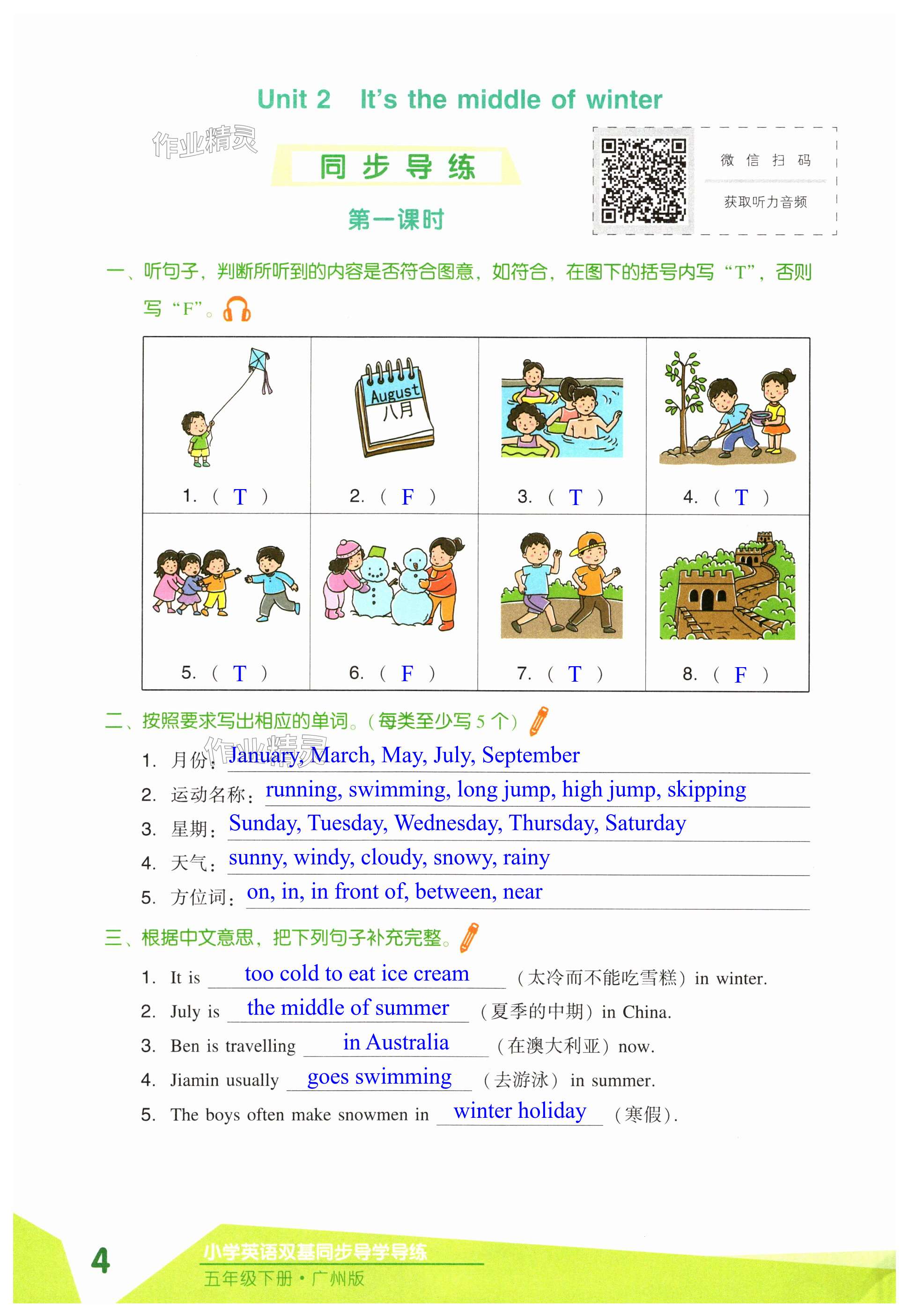 注:目前有些书本章节名称可能整理的还不是很完善,但都是按照顺序排列的,请同学们按照顺序仔细查找。练习册 2024年双基同步导学导练五年级英语下册教科版广州专版 答案主要是用来给同学们做完题方便对答案用的,请勿直接抄袭。