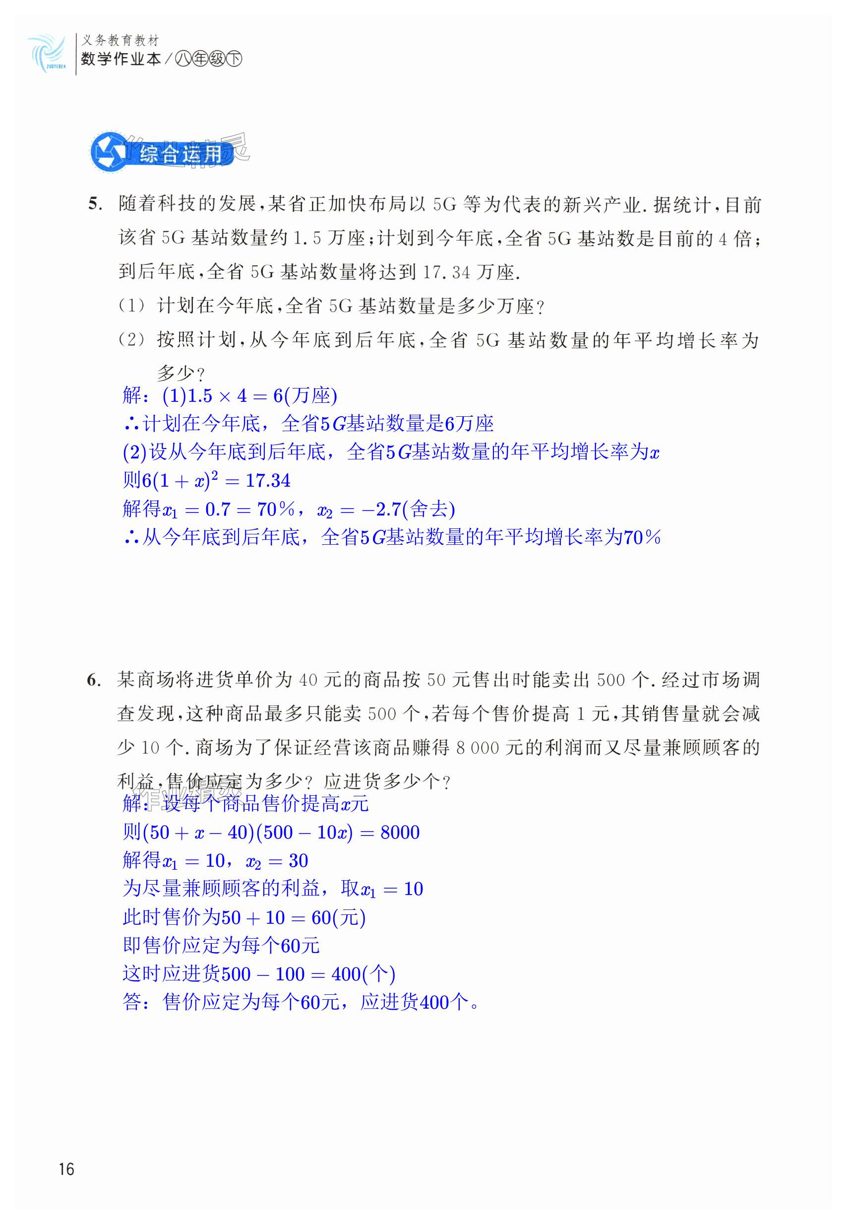 注:目前有些书本章节名称可能整理的还不是很完善,但都是按照顺序排列的,请同学们按照顺序仔细查找。练习册 2024年作业本浙江教育出版社八年级数学下册浙教版 答案主要是用来给同学们做完题方便对答案用的,请勿直接抄袭。