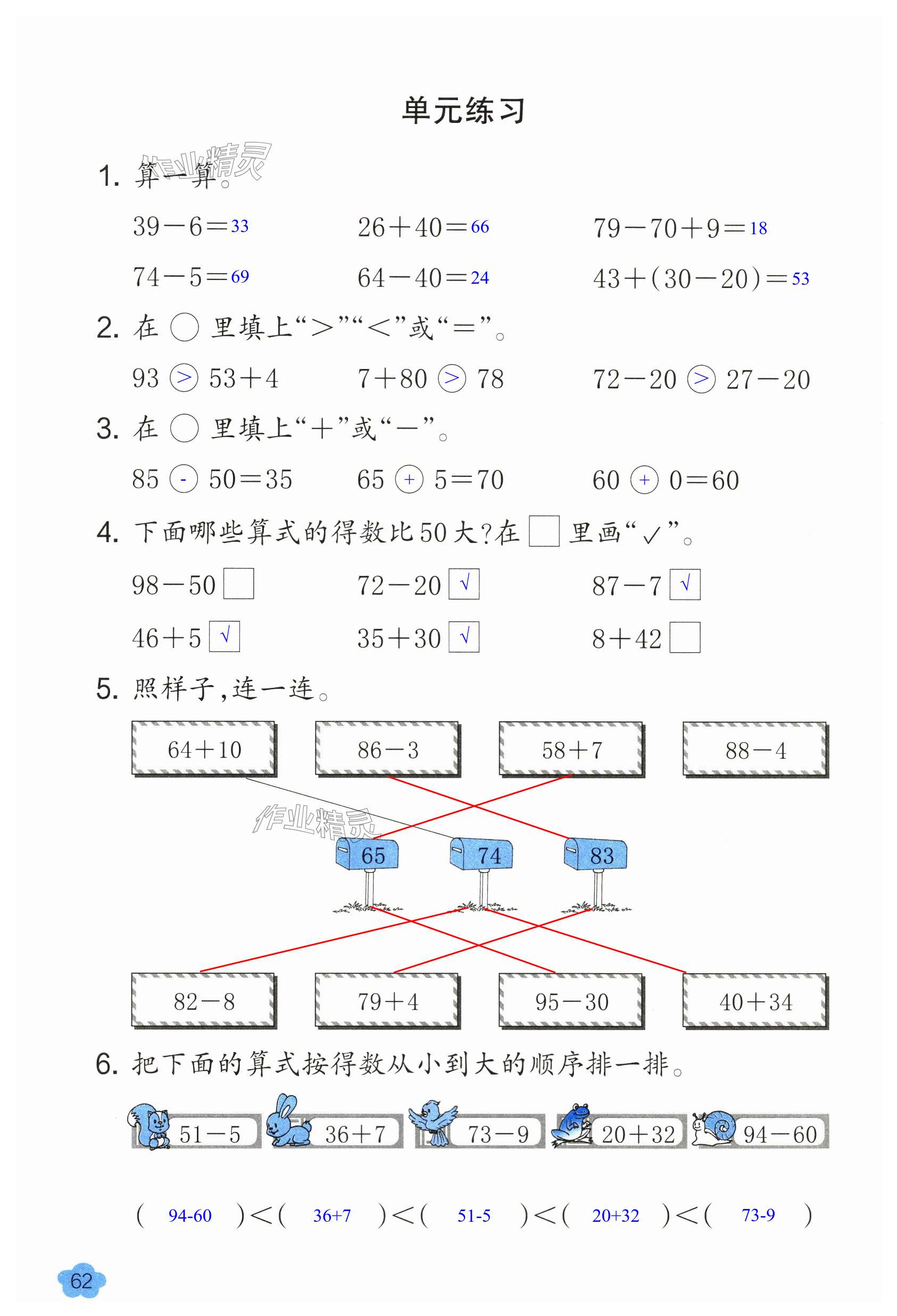 注:目前有些书本章节名称可能整理的还不是很完善,但都是按照顺序排列的,请同学们按照顺序仔细查找。练习册 2024年作业本浙江教育出版社一年级数学下册人教版 答案主要是用来给同学们做完题方便对答案用的,请勿直接抄袭。