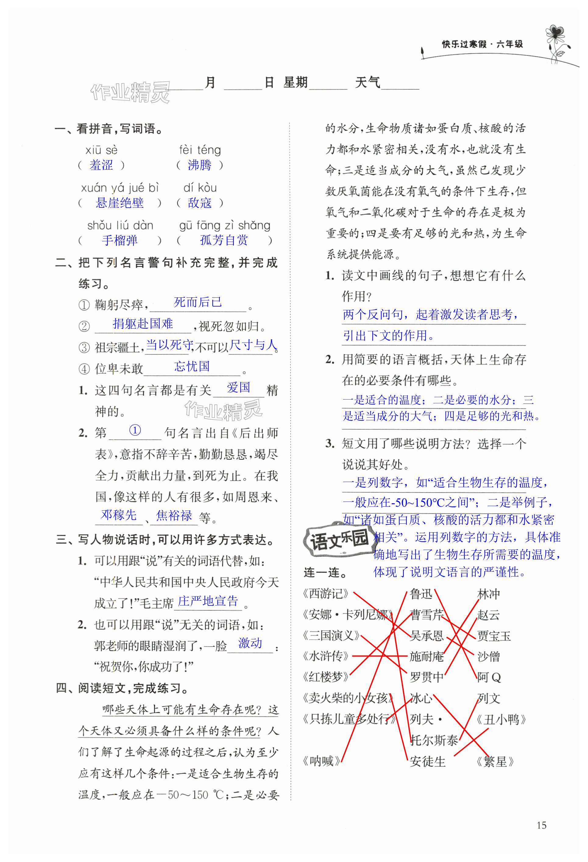 注:目前有些书本章节名称可能整理的还不是很完善,但都是按照顺序排列的,请同学们按照顺序仔细查找。练习册 2024年快乐过寒假六年级江苏凤凰科学技术出版社 答案主要是用来给同学们做完题方便对答案用的,请勿直接抄袭。