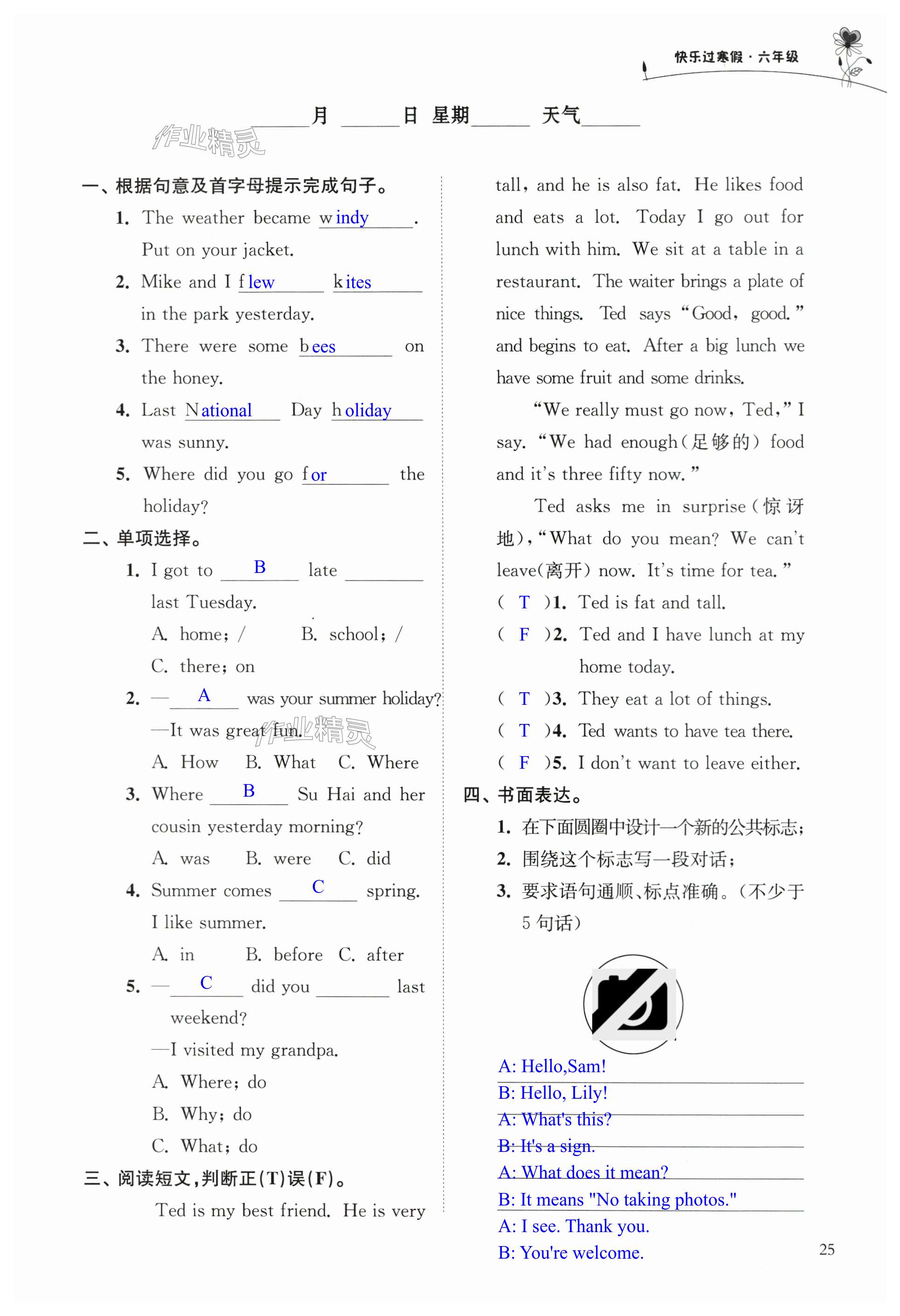 注:目前有些书本章节名称可能整理的还不是很完善,但都是按照顺序排列的,请同学们按照顺序仔细查找。练习册 2024年快乐过寒假六年级江苏凤凰科学技术出版社 答案主要是用来给同学们做完题方便对答案用的,请勿直接抄袭。
