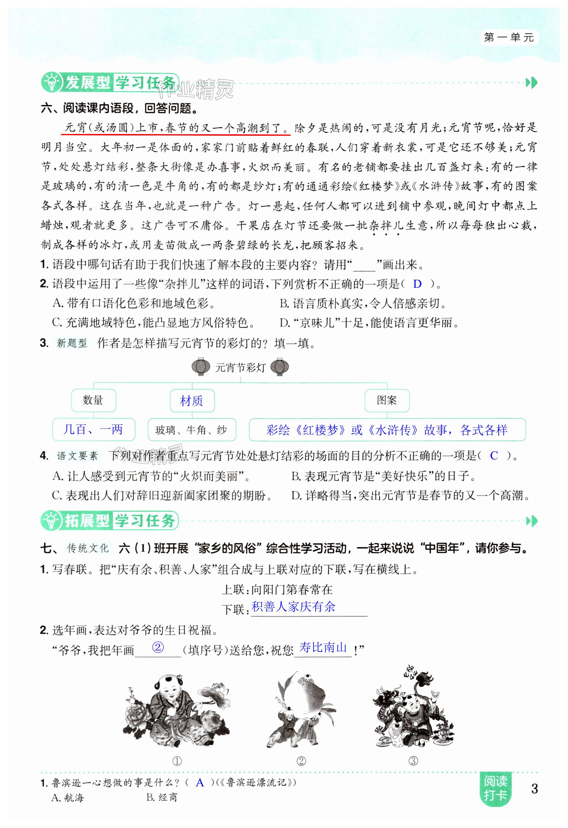 注:目前有些书本章节名称可能整理的还不是很完善,但都是按照顺序排列的,请同学们按照顺序仔细查找。练习册 2024年黄冈小状元作业本六年级语文下册人教版 答案主要是用来给同学们做完题方便对答案用的,请勿直接抄袭。