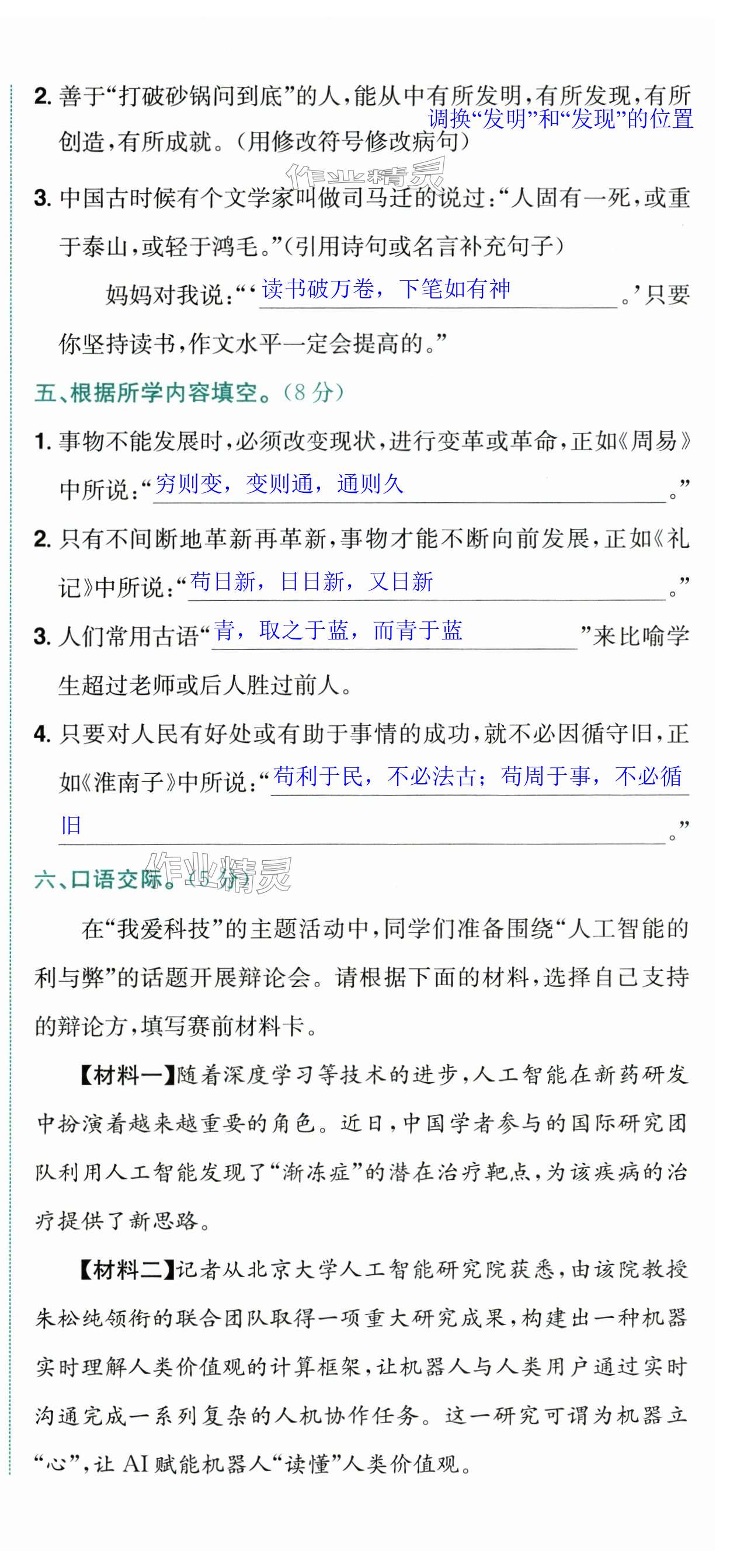 注:目前有些书本章节名称可能整理的还不是很完善,但都是按照顺序排列的,请同学们按照顺序仔细查找。练习册 2024年黄冈小状元作业本六年级语文下册人教版 答案主要是用来给同学们做完题方便对答案用的,请勿直接抄袭。