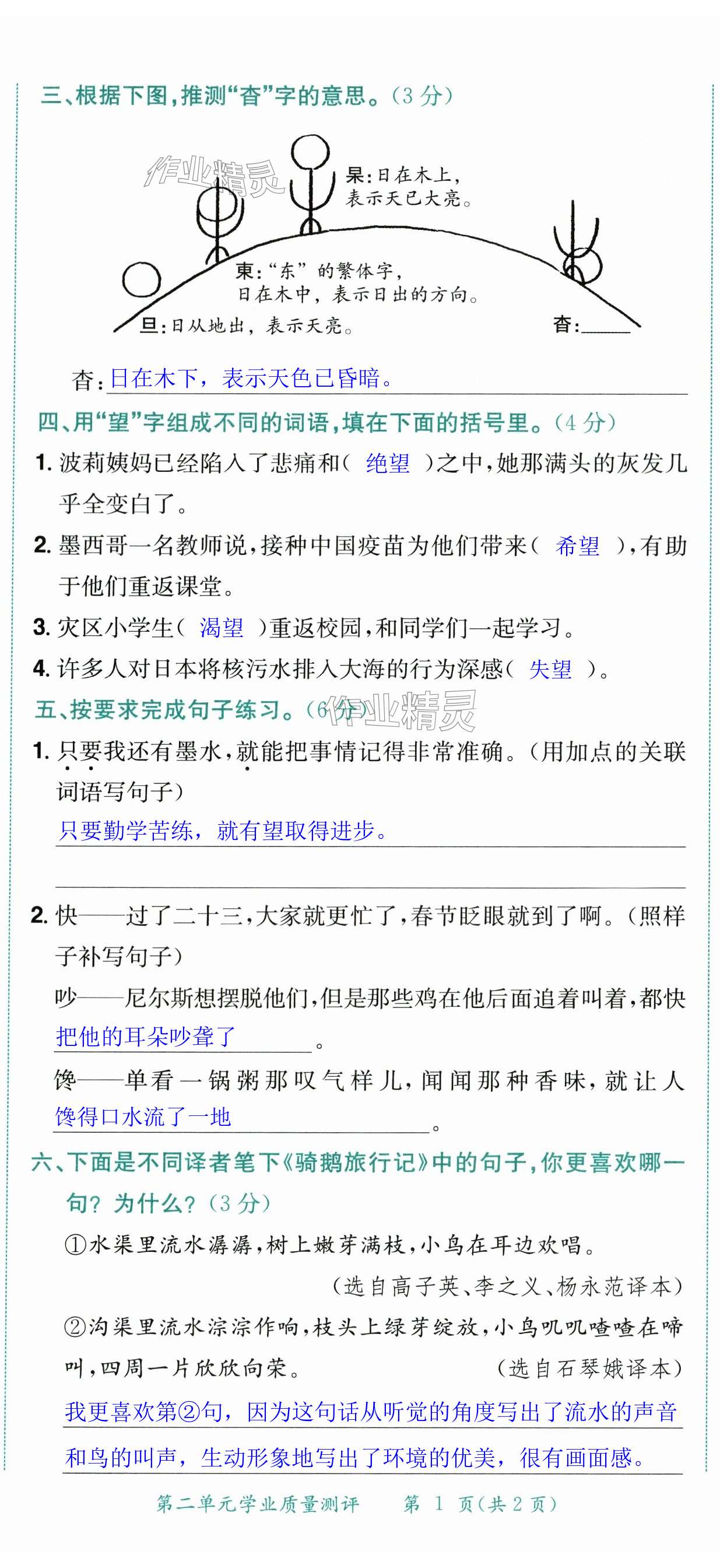 注:目前有些书本章节名称可能整理的还不是很完善,但都是按照顺序排列的,请同学们按照顺序仔细查找。练习册 2024年黄冈小状元作业本六年级语文下册人教版 答案主要是用来给同学们做完题方便对答案用的,请勿直接抄袭。