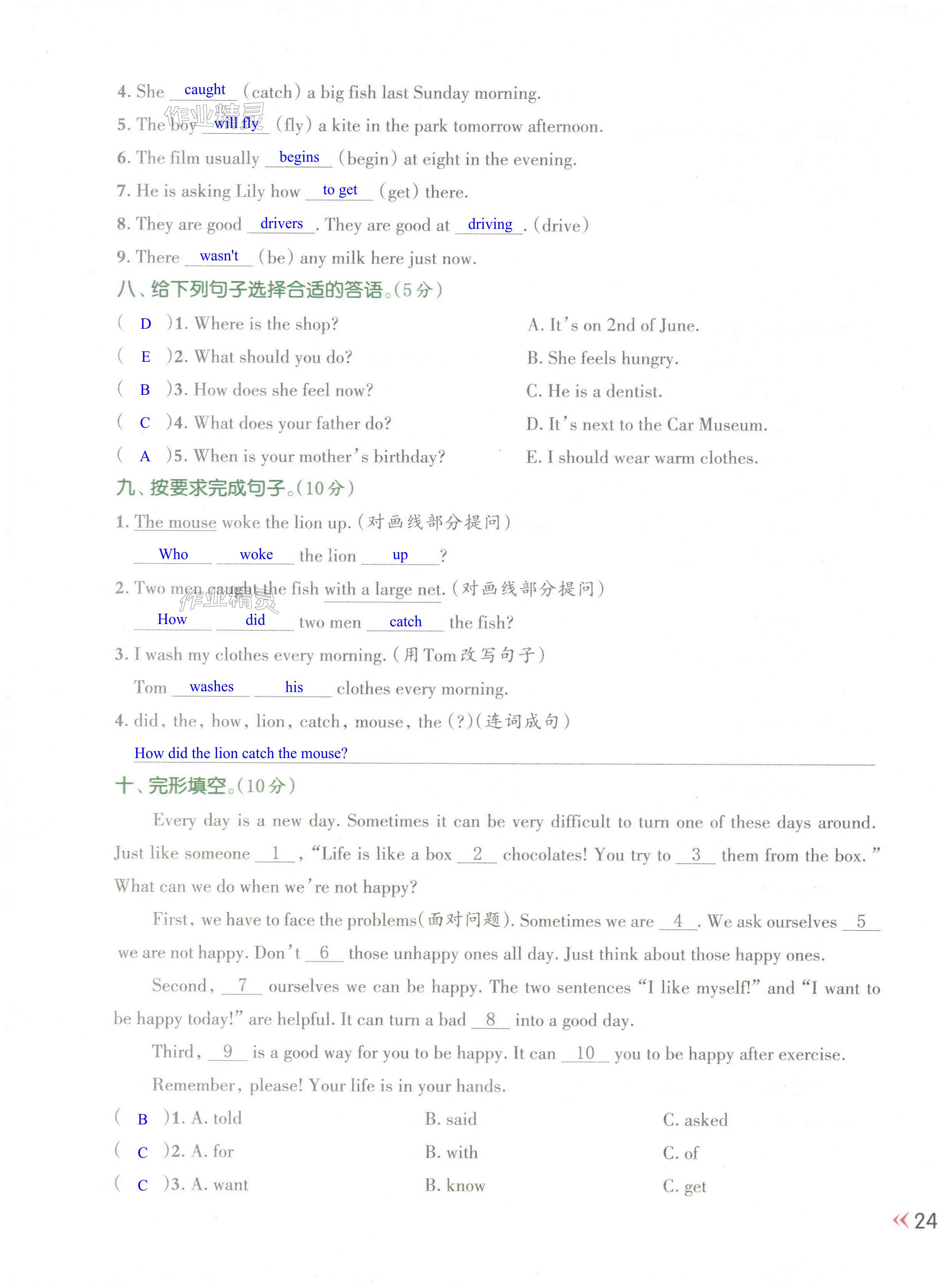 注:目前有些书本章节名称可能整理的还不是很完善,但都是按照顺序排列的,请同学们按照顺序仔细查找。练习册 2024年能力形成同步测试六年级英语下册译林版 答案主要是用来给同学们做完题方便对答案用的,请勿直接抄袭。