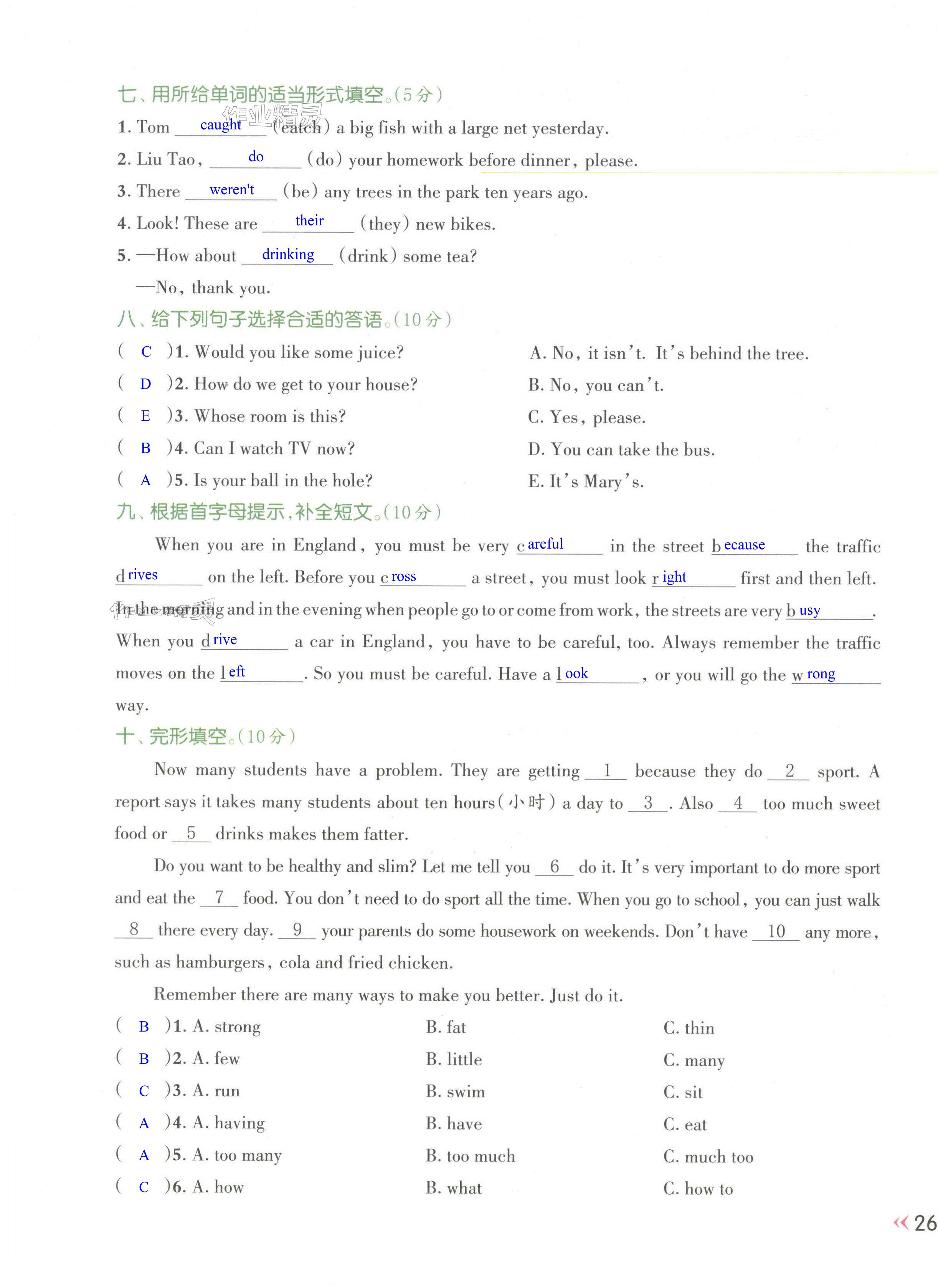 注:目前有些书本章节名称可能整理的还不是很完善,但都是按照顺序排列的,请同学们按照顺序仔细查找。练习册 2024年能力形成同步测试六年级英语下册译林版 答案主要是用来给同学们做完题方便对答案用的,请勿直接抄袭。