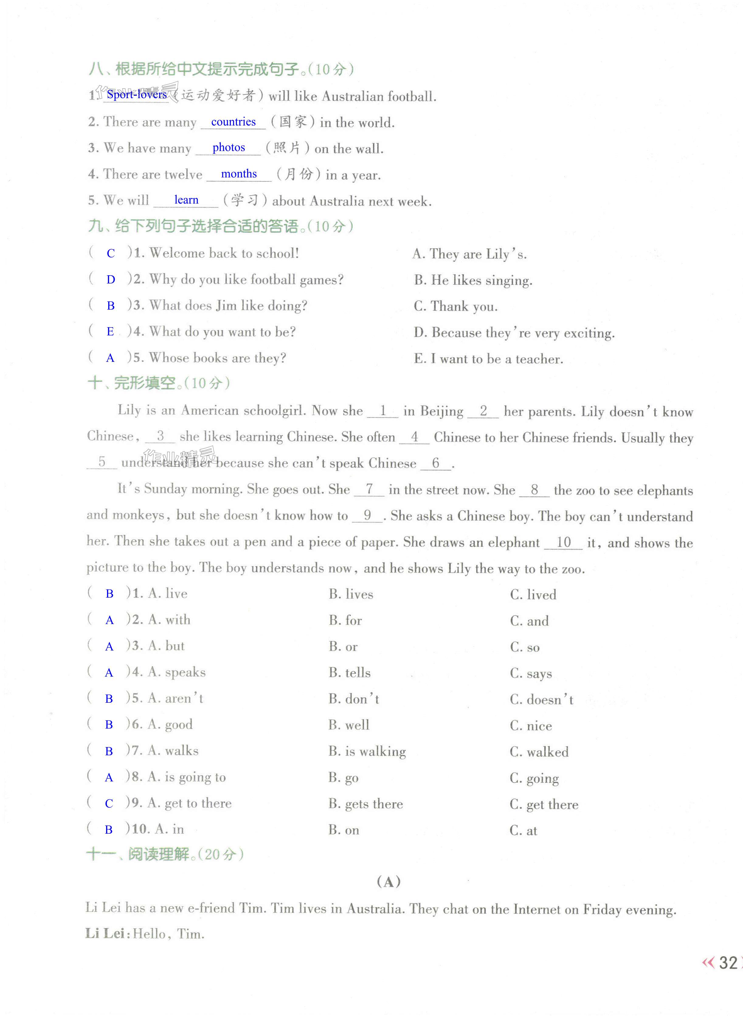 注:目前有些书本章节名称可能整理的还不是很完善,但都是按照顺序排列的,请同学们按照顺序仔细查找。练习册 2024年能力形成同步测试六年级英语下册译林版 答案主要是用来给同学们做完题方便对答案用的,请勿直接抄袭。