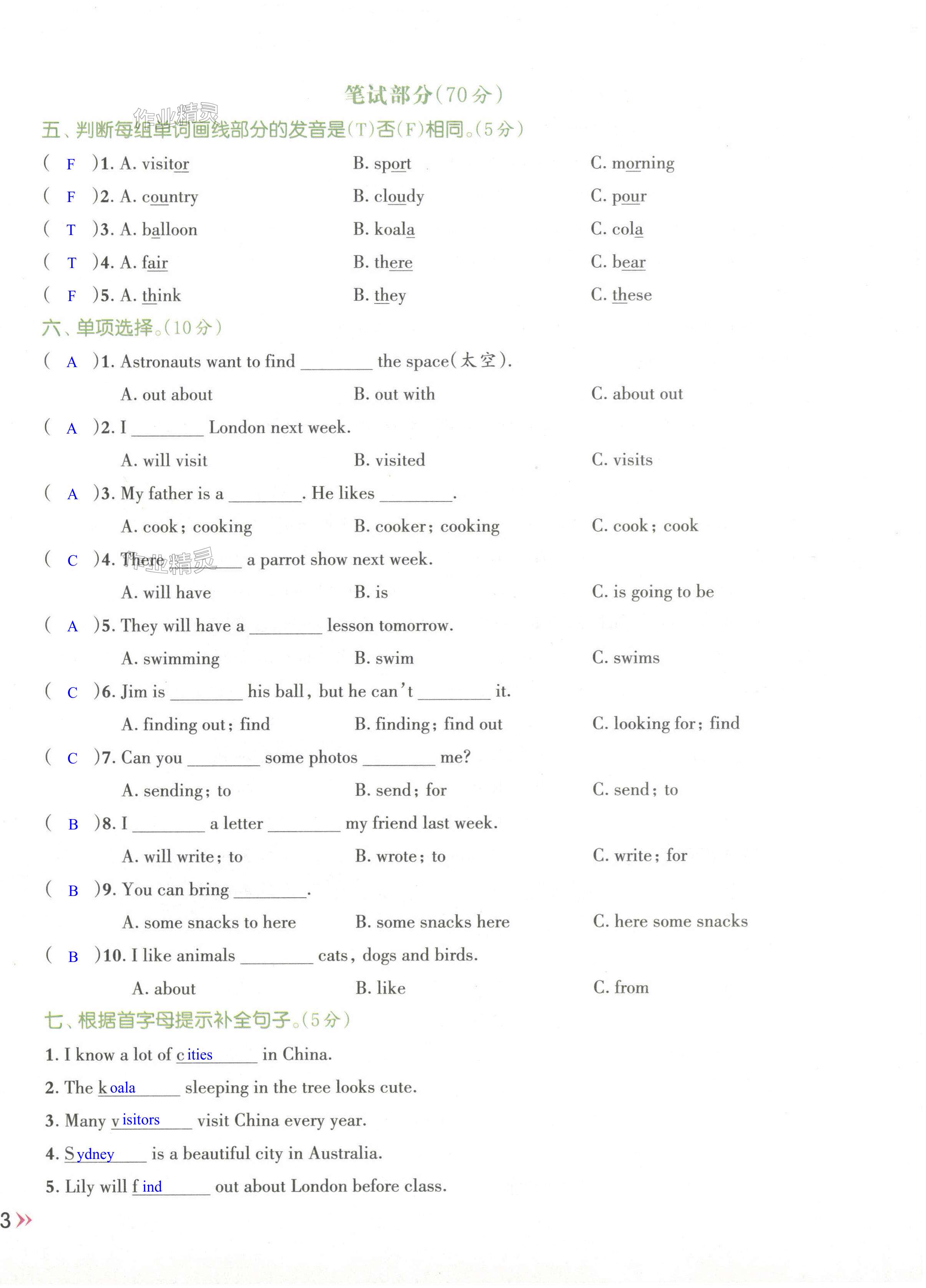 注:目前有些书本章节名称可能整理的还不是很完善,但都是按照顺序排列的,请同学们按照顺序仔细查找。练习册 2024年能力形成同步测试六年级英语下册译林版 答案主要是用来给同学们做完题方便对答案用的,请勿直接抄袭。