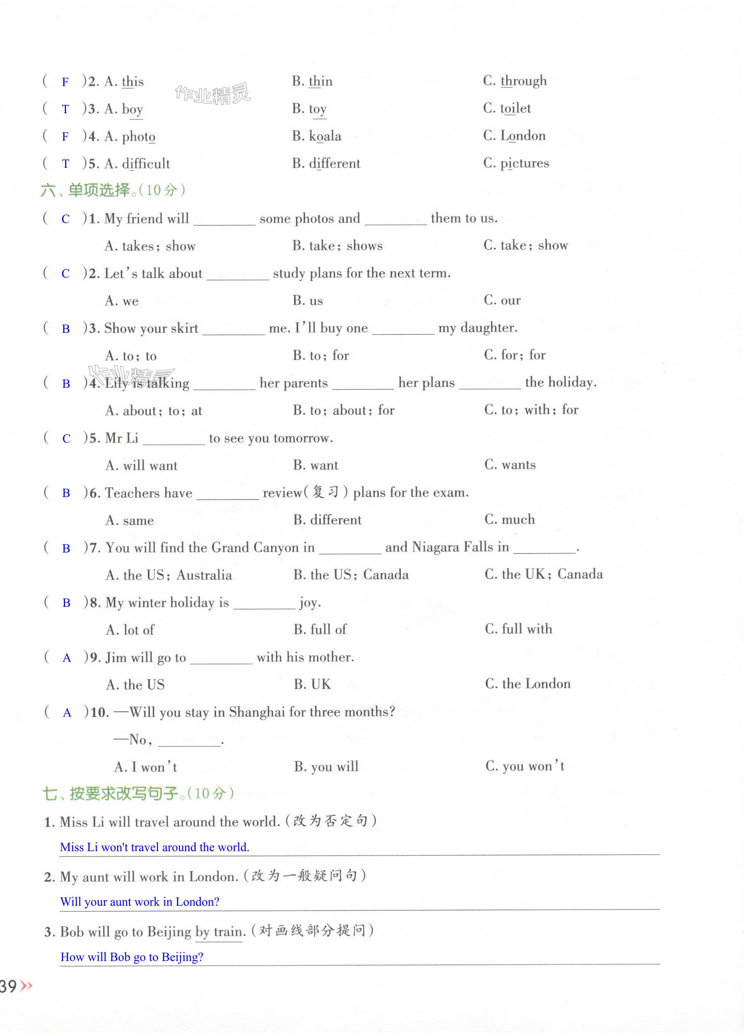 注:目前有些书本章节名称可能整理的还不是很完善,但都是按照顺序排列的,请同学们按照顺序仔细查找。练习册 2024年能力形成同步测试六年级英语下册译林版 答案主要是用来给同学们做完题方便对答案用的,请勿直接抄袭。