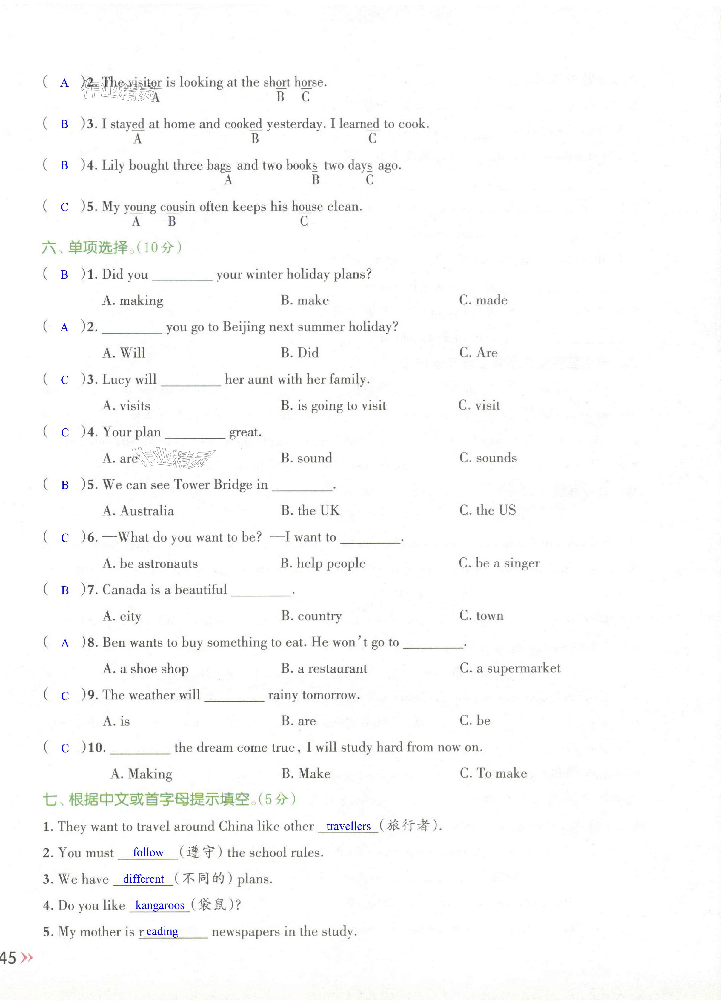 注:目前有些书本章节名称可能整理的还不是很完善,但都是按照顺序排列的,请同学们按照顺序仔细查找。练习册 2024年能力形成同步测试六年级英语下册译林版 答案主要是用来给同学们做完题方便对答案用的,请勿直接抄袭。