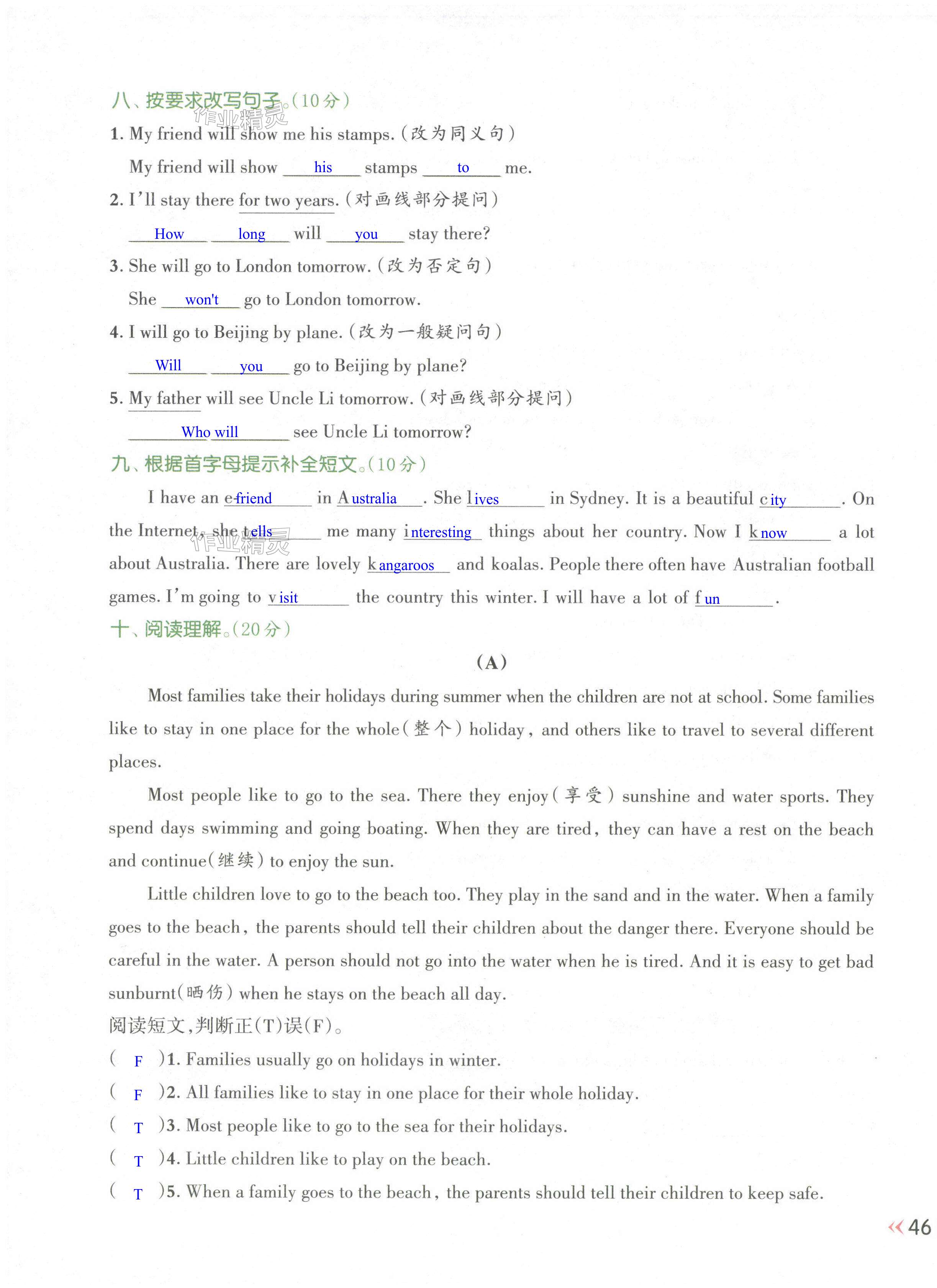 注:目前有些书本章节名称可能整理的还不是很完善,但都是按照顺序排列的,请同学们按照顺序仔细查找。练习册 2024年能力形成同步测试六年级英语下册译林版 答案主要是用来给同学们做完题方便对答案用的,请勿直接抄袭。