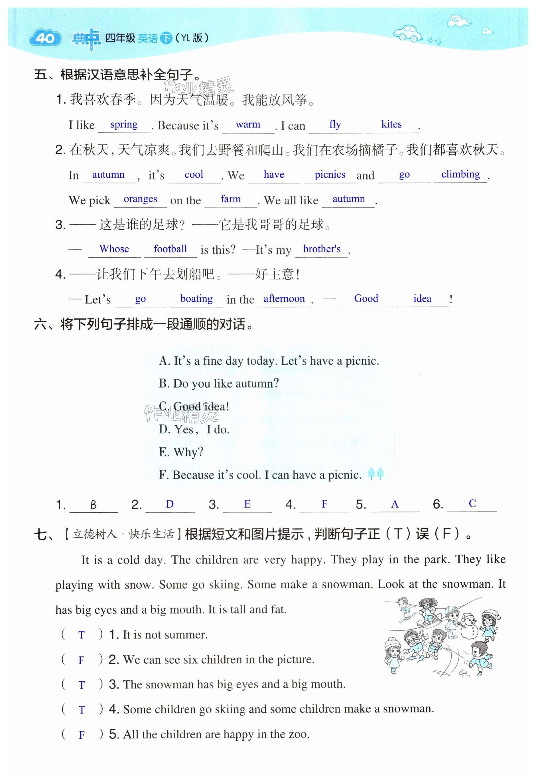 注:目前有些书本章节名称可能整理的还不是很完善,但都是按照顺序排列的,请同学们按照顺序仔细查找。练习册 2024年综合应用创新题典中点四年级英语下册译林版 答案主要是用来给同学们做完题方便对答案用的,请勿直接抄袭。