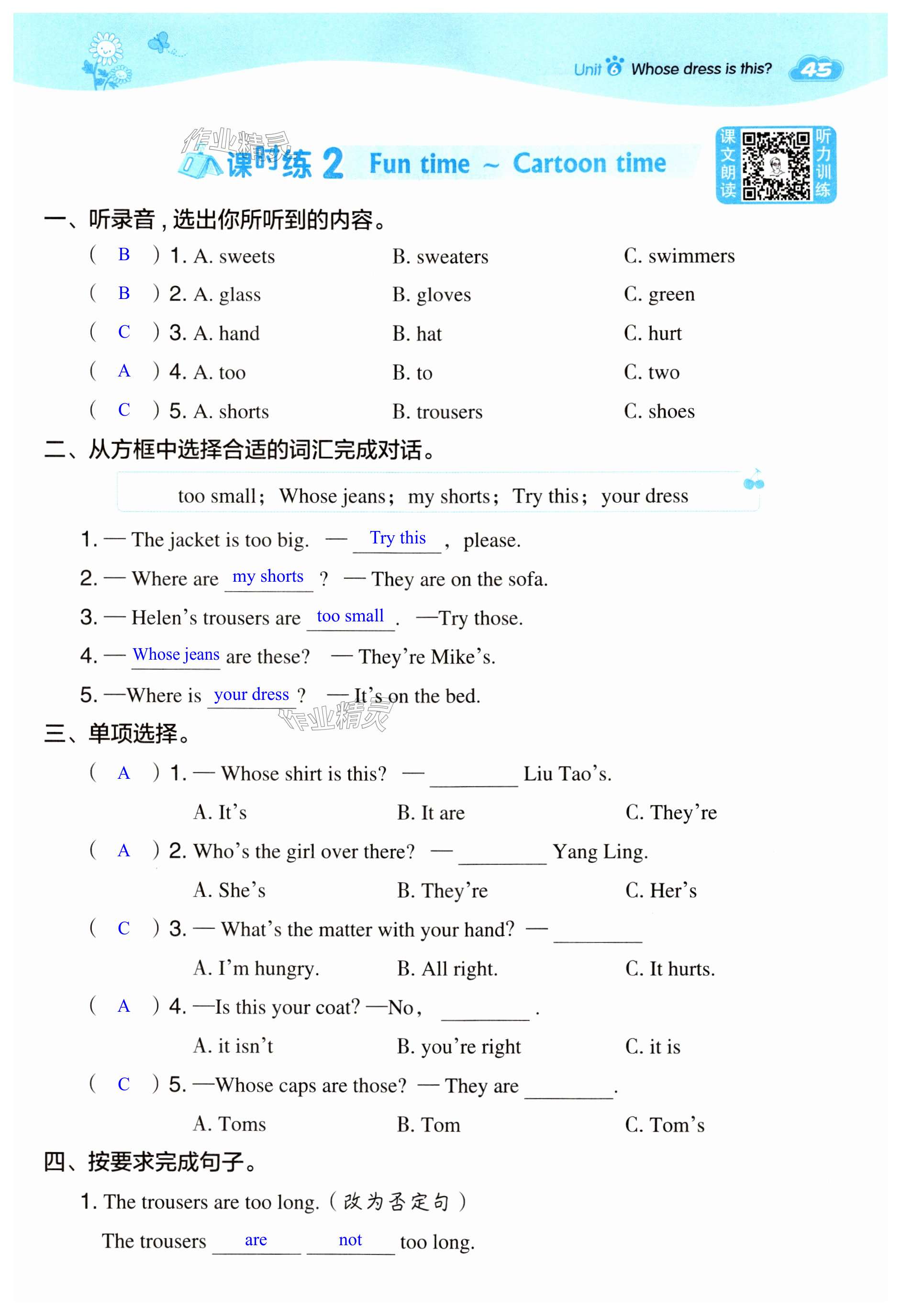 注:目前有些书本章节名称可能整理的还不是很完善,但都是按照顺序排列的,请同学们按照顺序仔细查找。练习册 2024年综合应用创新题典中点四年级英语下册译林版 答案主要是用来给同学们做完题方便对答案用的,请勿直接抄袭。