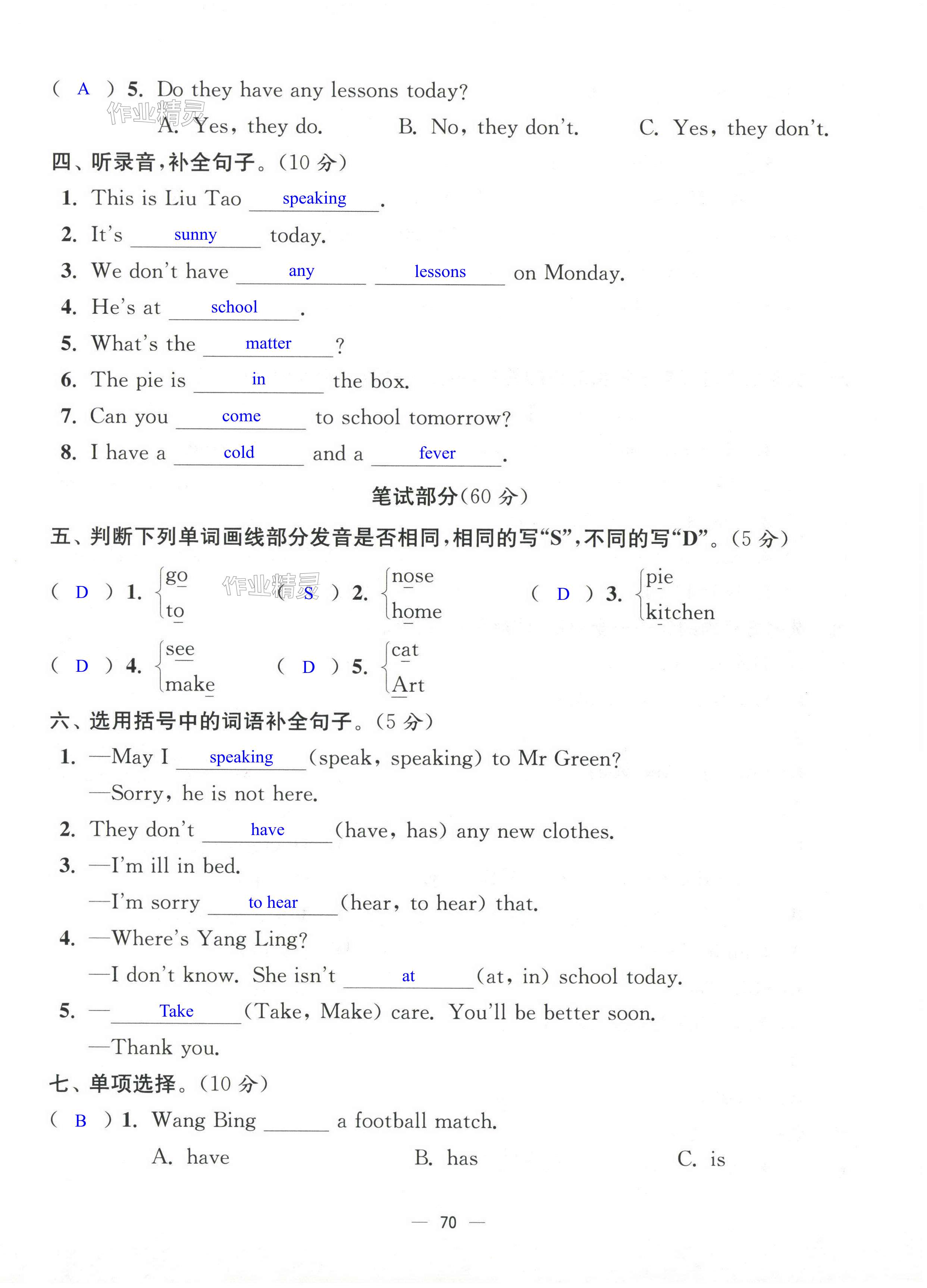 注:目前有些书本章节名称可能整理的还不是很完善,但都是按照顺序排列的,请同学们按照顺序仔细查找。练习册 2024年江苏好卷四年级英语下册译林版 答案主要是用来给同学们做完题方便对答案用的,请勿直接抄袭。