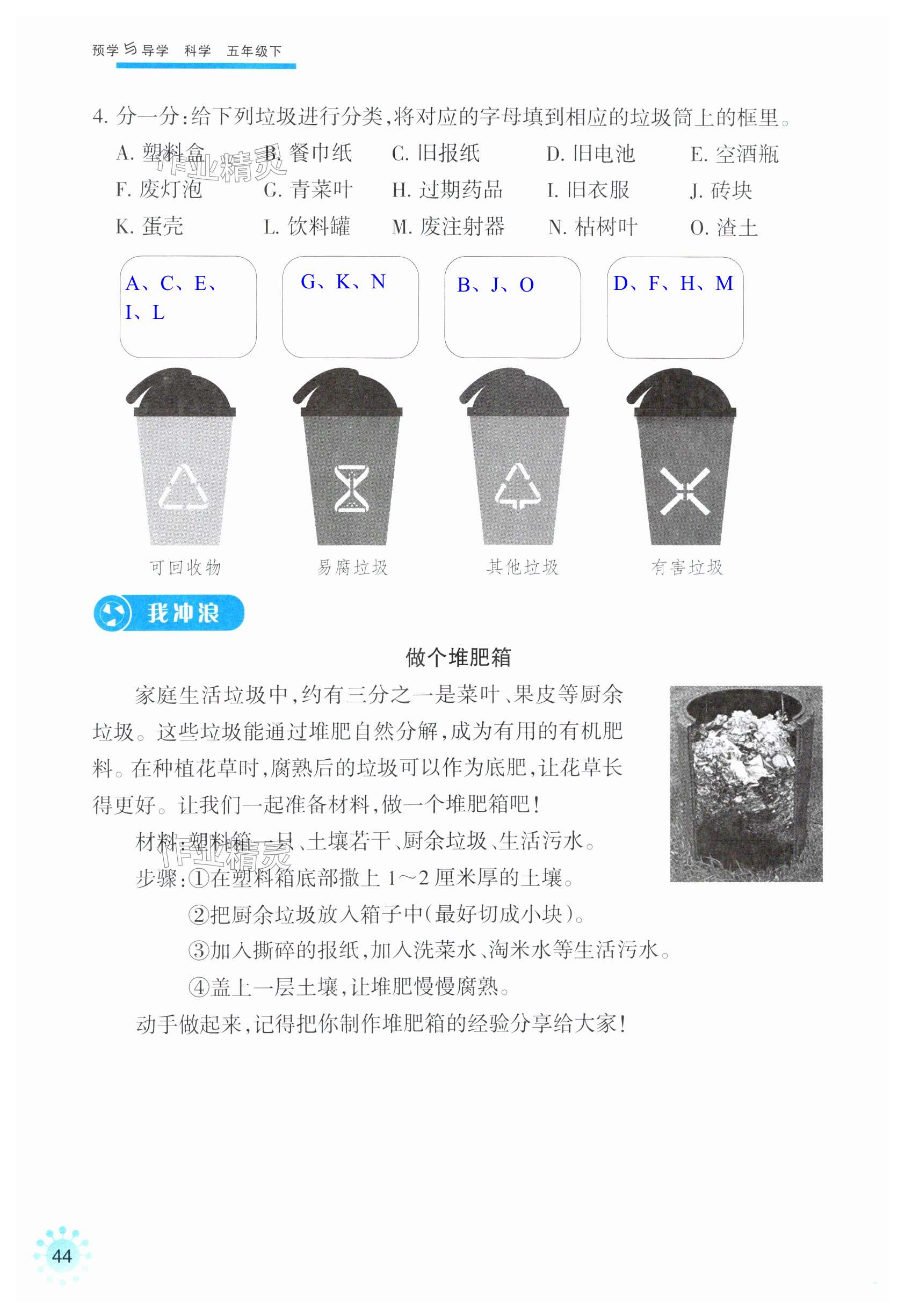注:目前有些书本章节名称可能整理的还不是很完善,但都是按照顺序排列的,请同学们按照顺序仔细查找。练习册 2024年预学与导学五年级科学下册教科版 答案主要是用来给同学们做完题方便对答案用的,请勿直接抄袭。