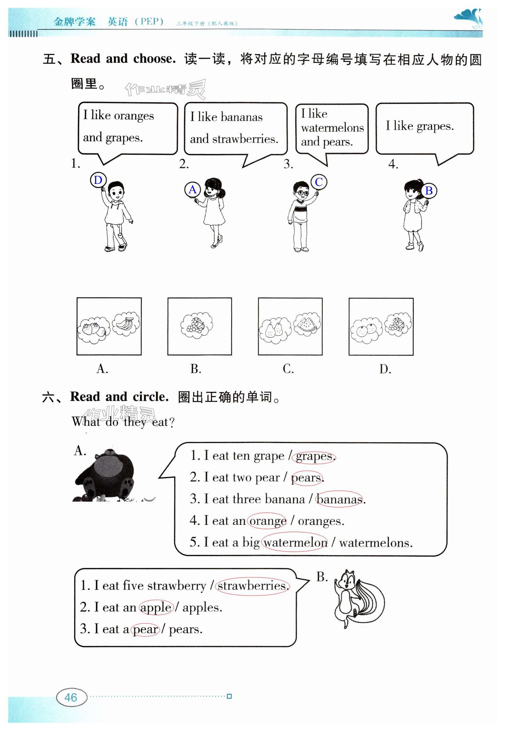 注:目前有些书本章节名称可能整理的还不是很完善,但都是按照顺序排列的,请同学们按照顺序仔细查找。练习册 2024年南方新课堂金牌学案三年级英语下册人教版 答案主要是用来给同学们做完题方便对答案用的,请勿直接抄袭。