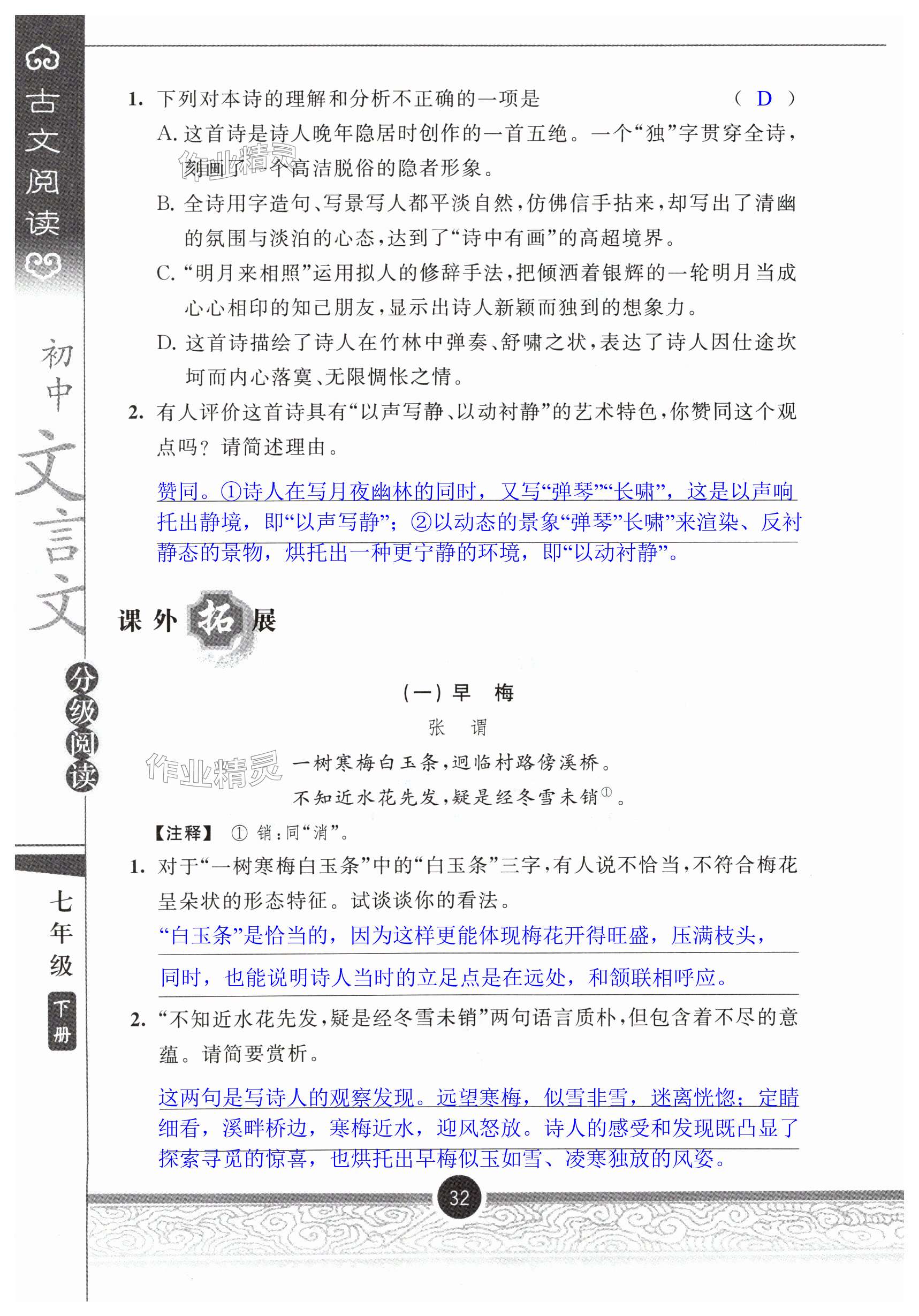 注:目前有些书本章节名称可能整理的还不是很完善,但都是按照顺序排列的,请同学们按照顺序仔细查找。练习册 2024年初中文言文分级阅读七年级下册 答案主要是用来给同学们做完题方便对答案用的,请勿直接抄袭。