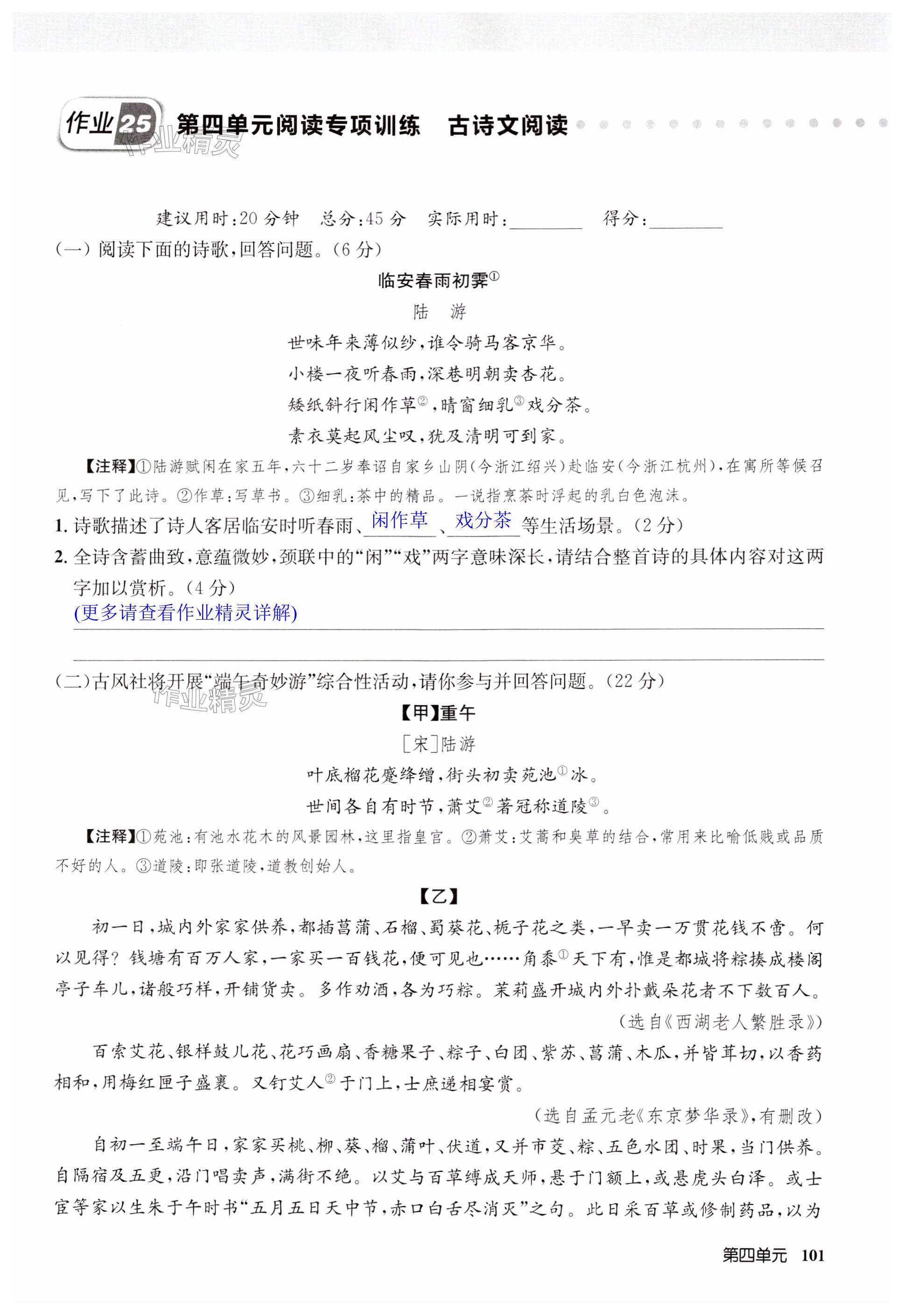 2024年启东中学作业本七年级语文下册人教版宿迁专版