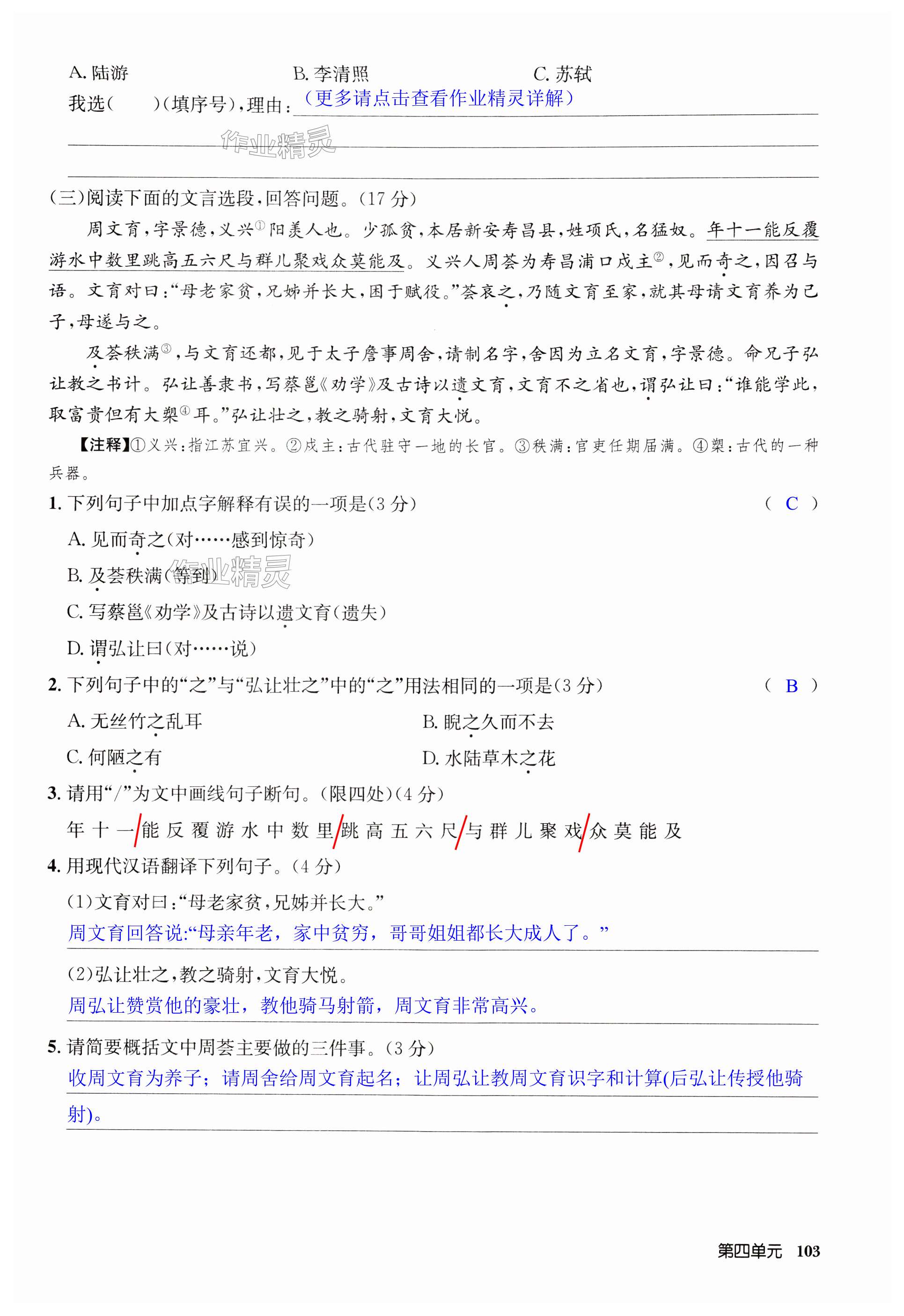 注:目前有些书本章节名称可能整理的还不是很完善,但都是按照顺序排列的,请同学们按照顺序仔细查找。练习册 2024年启东中学作业本七年级语文下册人教版宿迁专版 答案主要是用来给同学们做完题方便对答案用的,请勿直接抄袭。