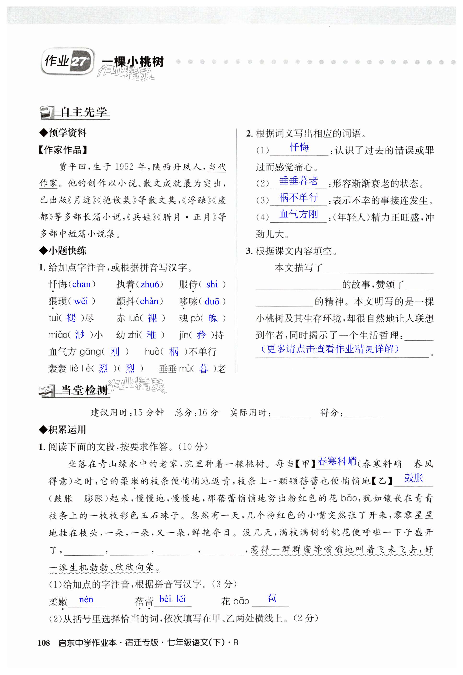 《2024年启东中学作业本七年级语文下册人教版宿迁专版》