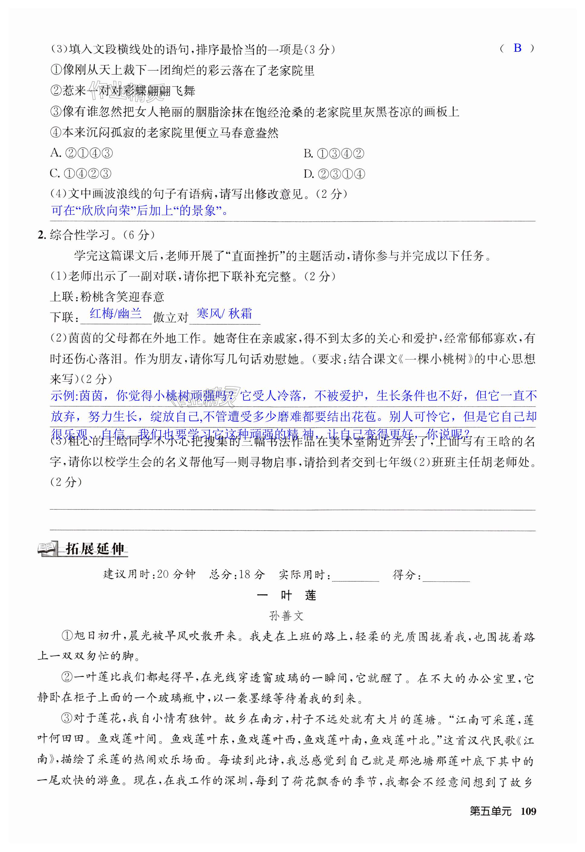 注:目前有些书本章节名称可能整理的还不是很完善,但都是按照顺序排列的,请同学们按照顺序仔细查找。练习册 2024年启东中学作业本七年级语文下册人教版宿迁专版 答案主要是用来给同学们做完题方便对答案用的,请勿直接抄袭。