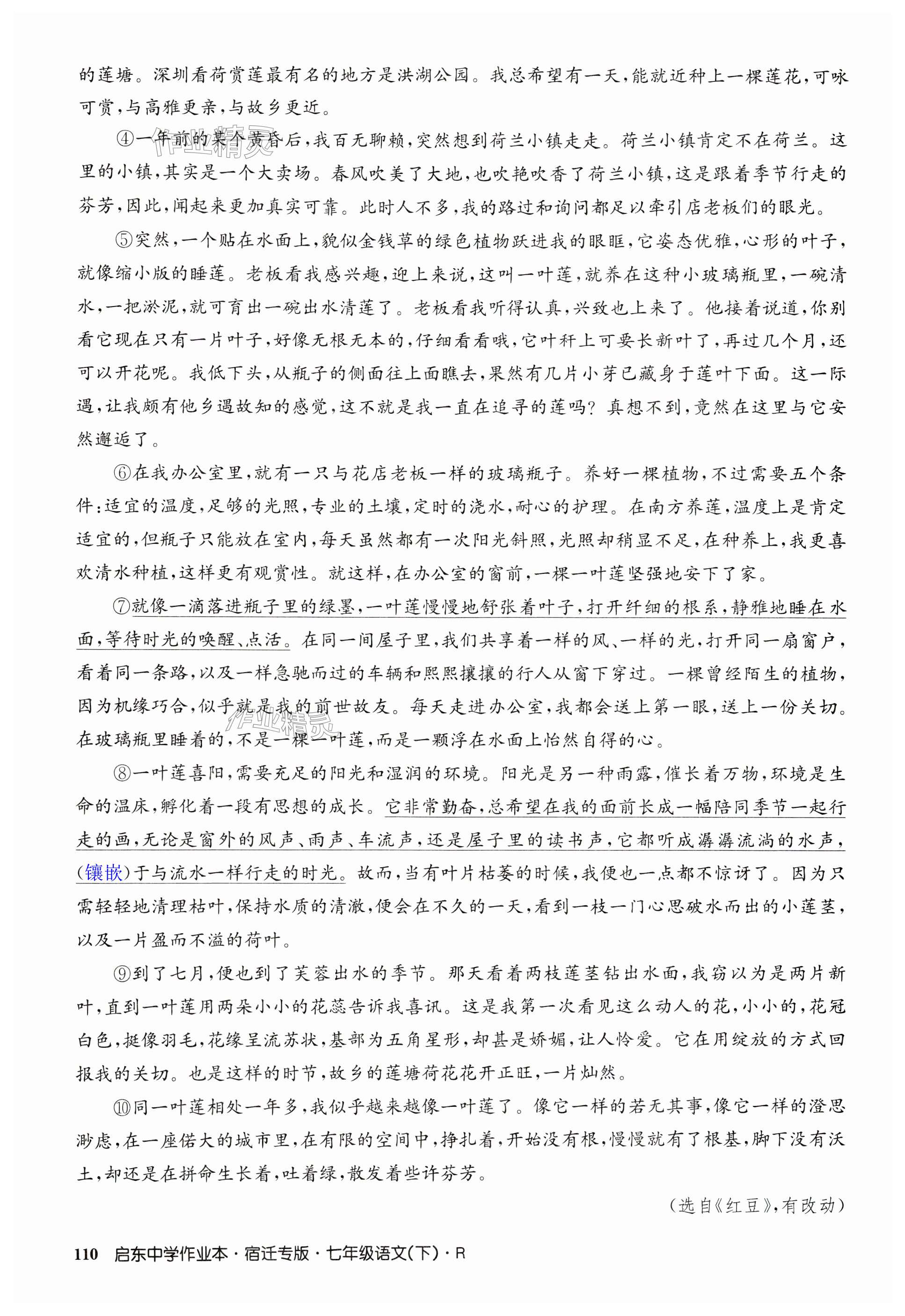 2024年启东中学作业本七年级语文下册人教版宿迁专版