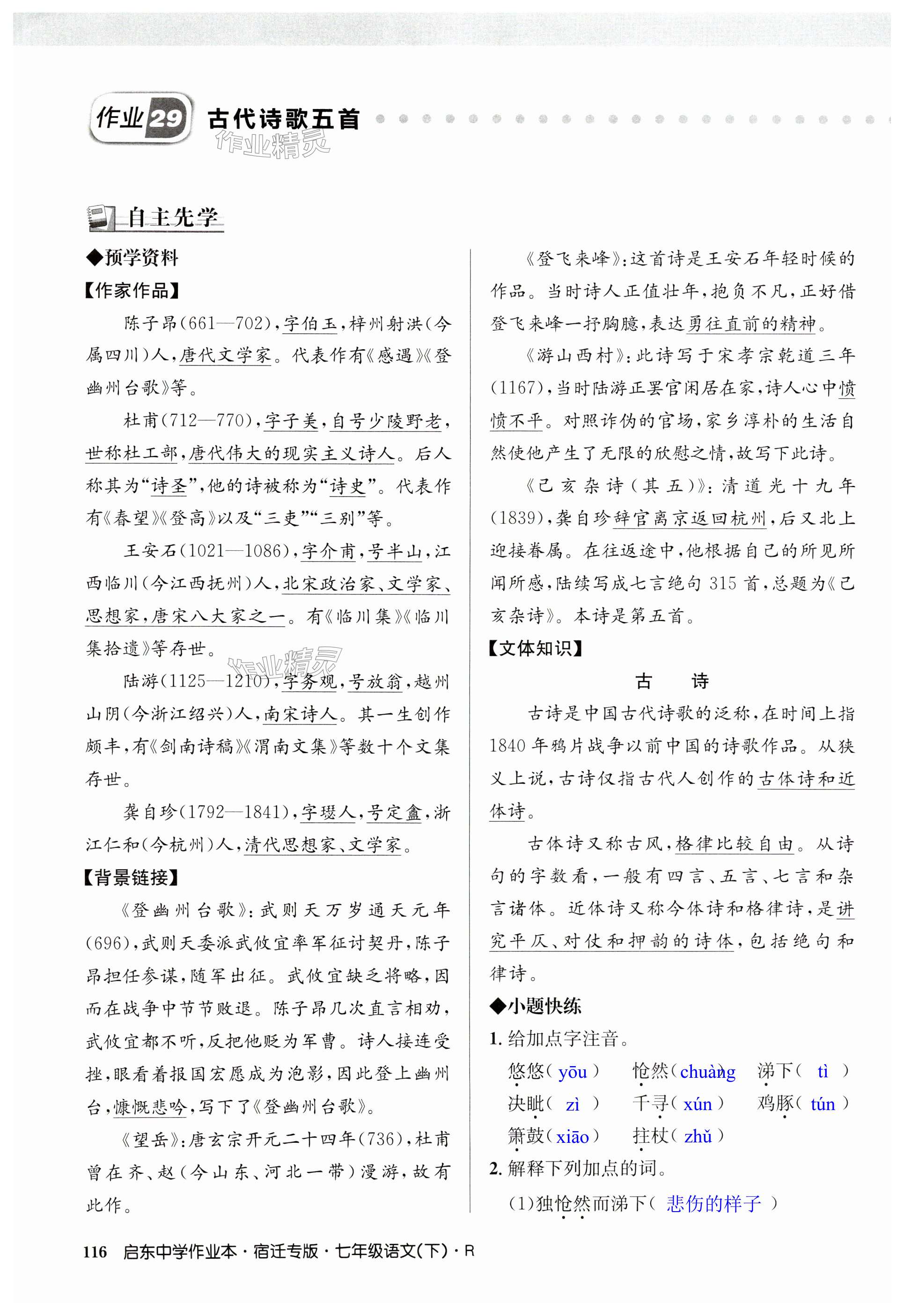 注:目前有些书本章节名称可能整理的还不是很完善,但都是按照顺序排列的,请同学们按照顺序仔细查找。练习册 2024年启东中学作业本七年级语文下册人教版宿迁专版 答案主要是用来给同学们做完题方便对答案用的,请勿直接抄袭。