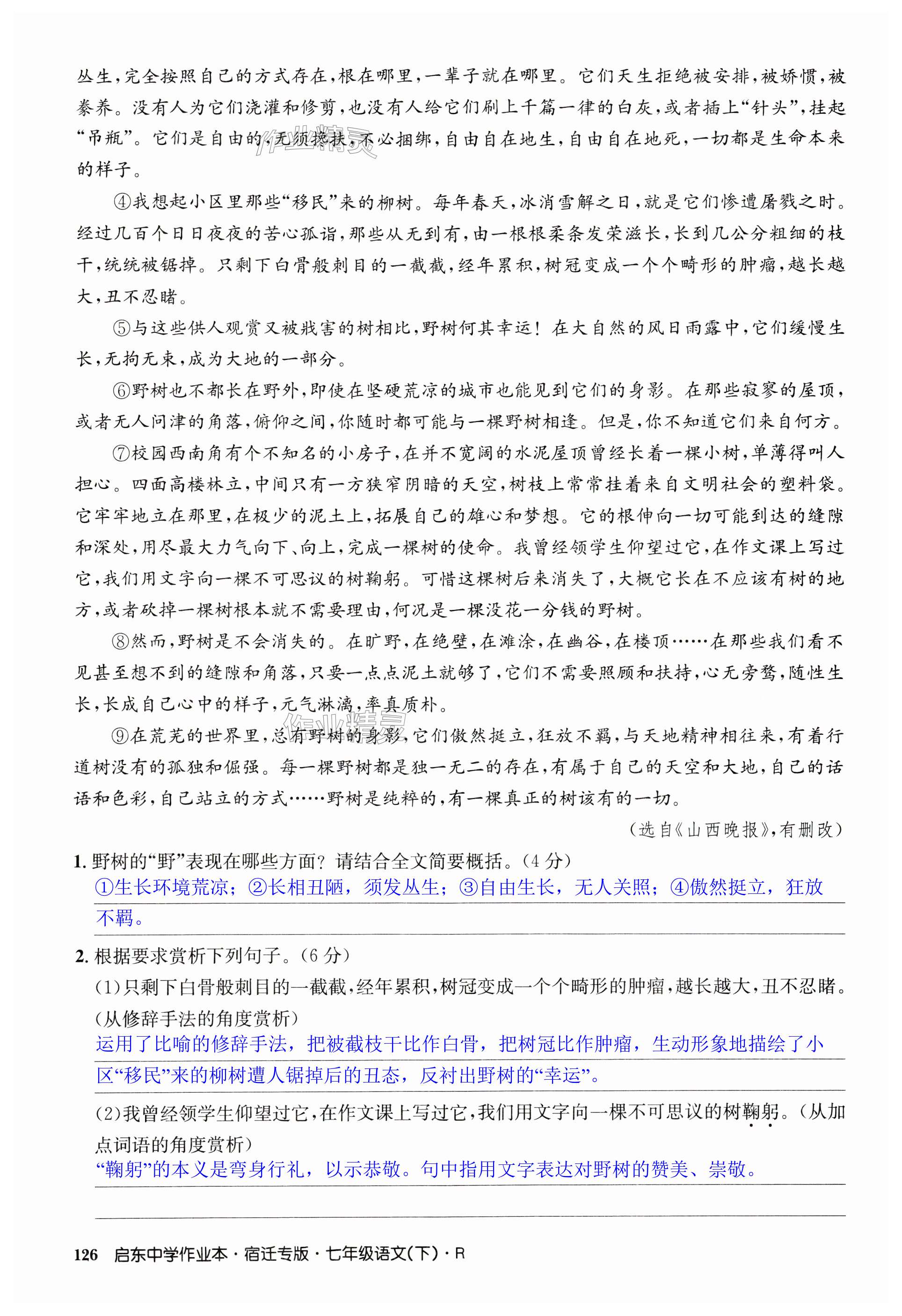 注:目前有些书本章节名称可能整理的还不是很完善,但都是按照顺序排列的,请同学们按照顺序仔细查找。练习册 2024年启东中学作业本七年级语文下册人教版宿迁专版 答案主要是用来给同学们做完题方便对答案用的,请勿直接抄袭。
