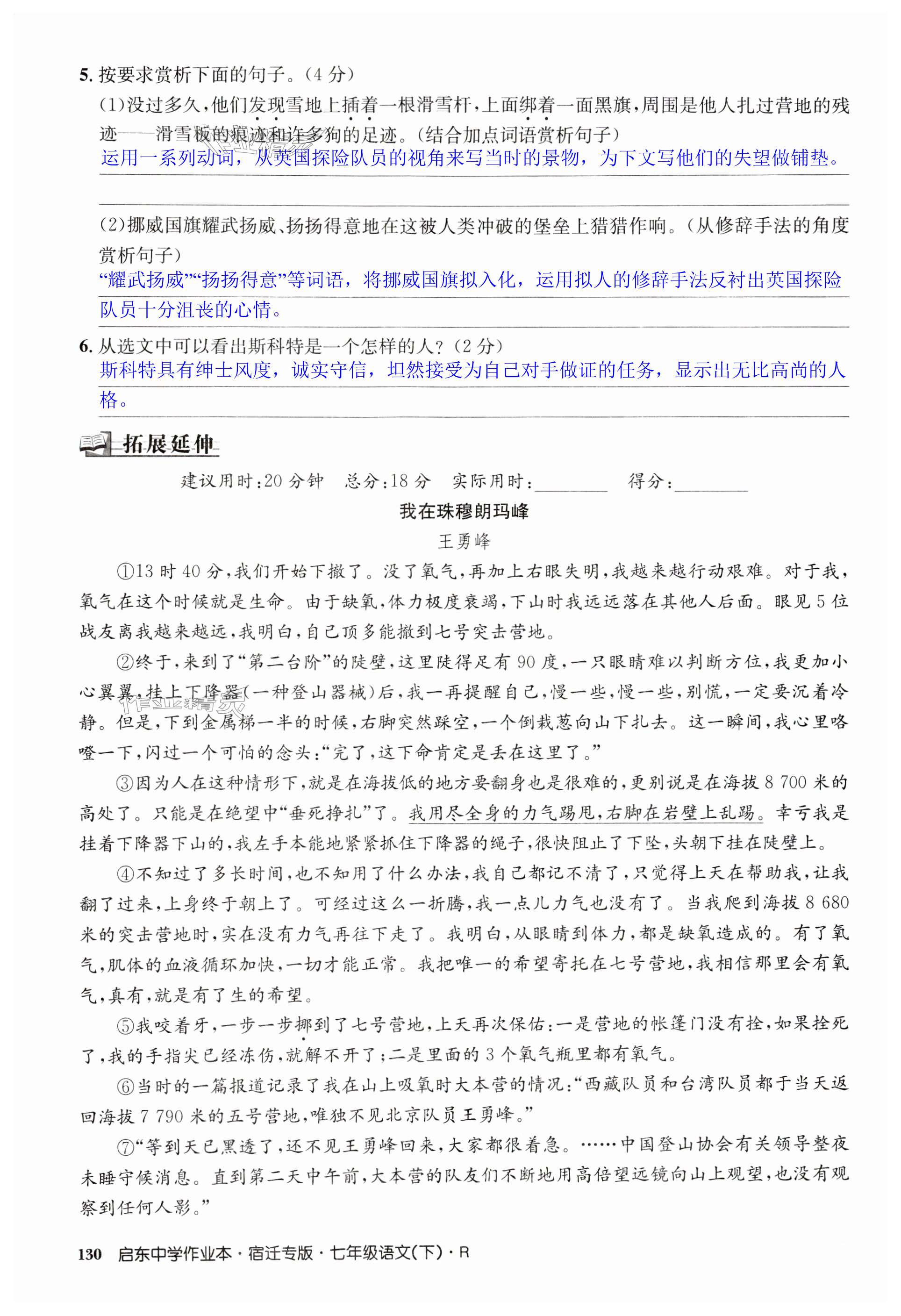 注:目前有些书本章节名称可能整理的还不是很完善,但都是按照顺序排列的,请同学们按照顺序仔细查找。练习册 2024年启东中学作业本七年级语文下册人教版宿迁专版 答案主要是用来给同学们做完题方便对答案用的,请勿直接抄袭。