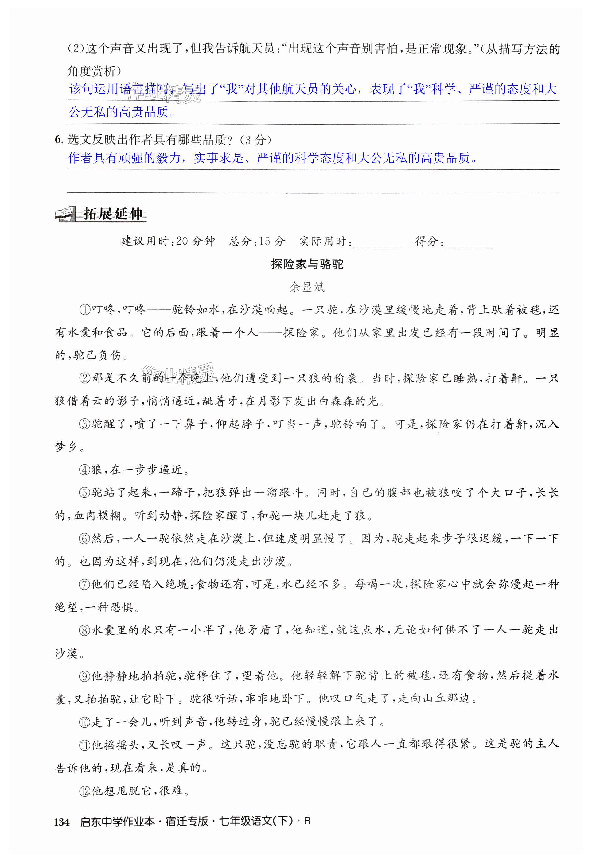 注:目前有些书本章节名称可能整理的还不是很完善,但都是按照顺序排列的,请同学们按照顺序仔细查找。练习册 2024年启东中学作业本七年级语文下册人教版宿迁专版 答案主要是用来给同学们做完题方便对答案用的,请勿直接抄袭。