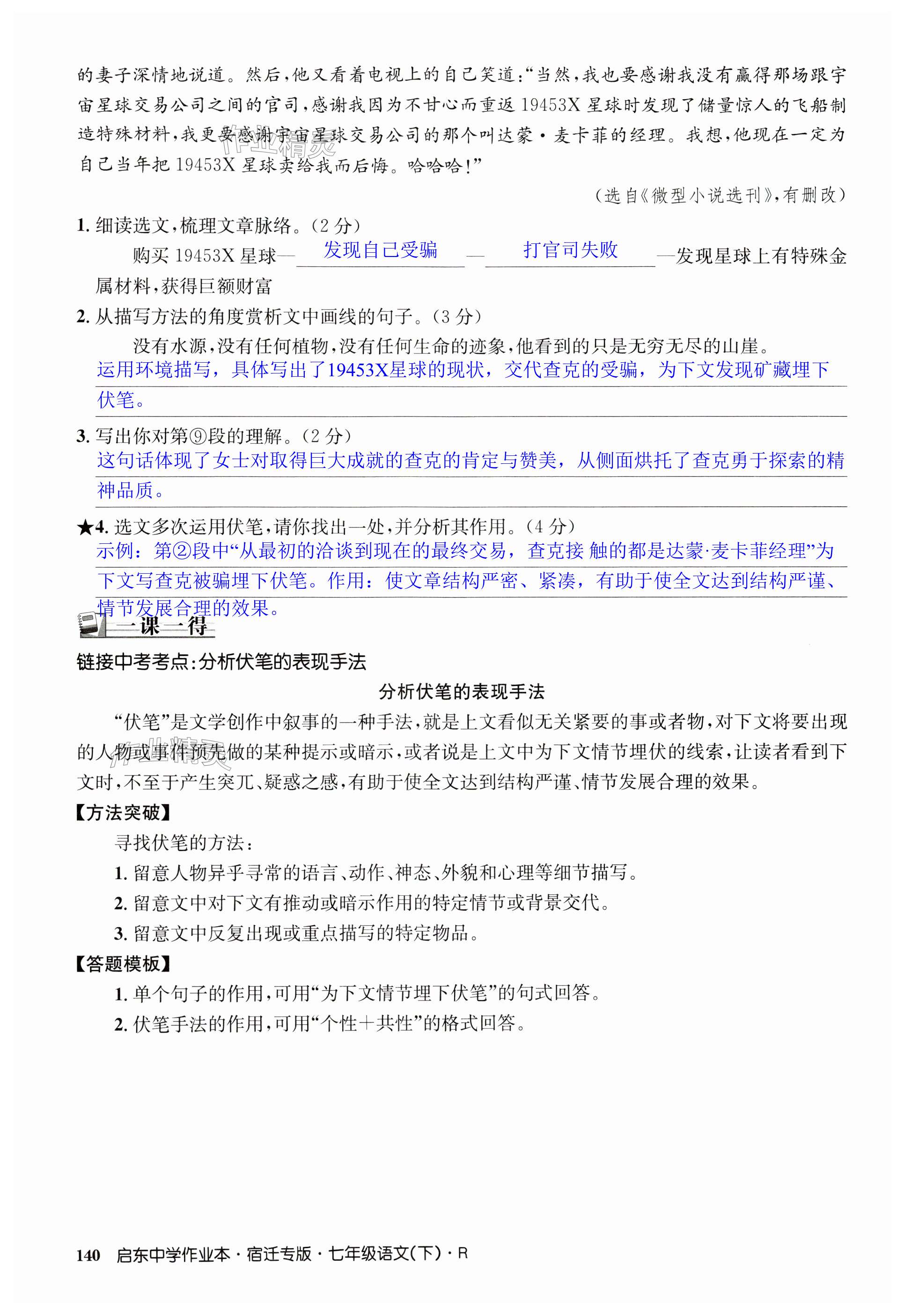 《2024年启东中学作业本七年级语文下册人教版宿迁专版》