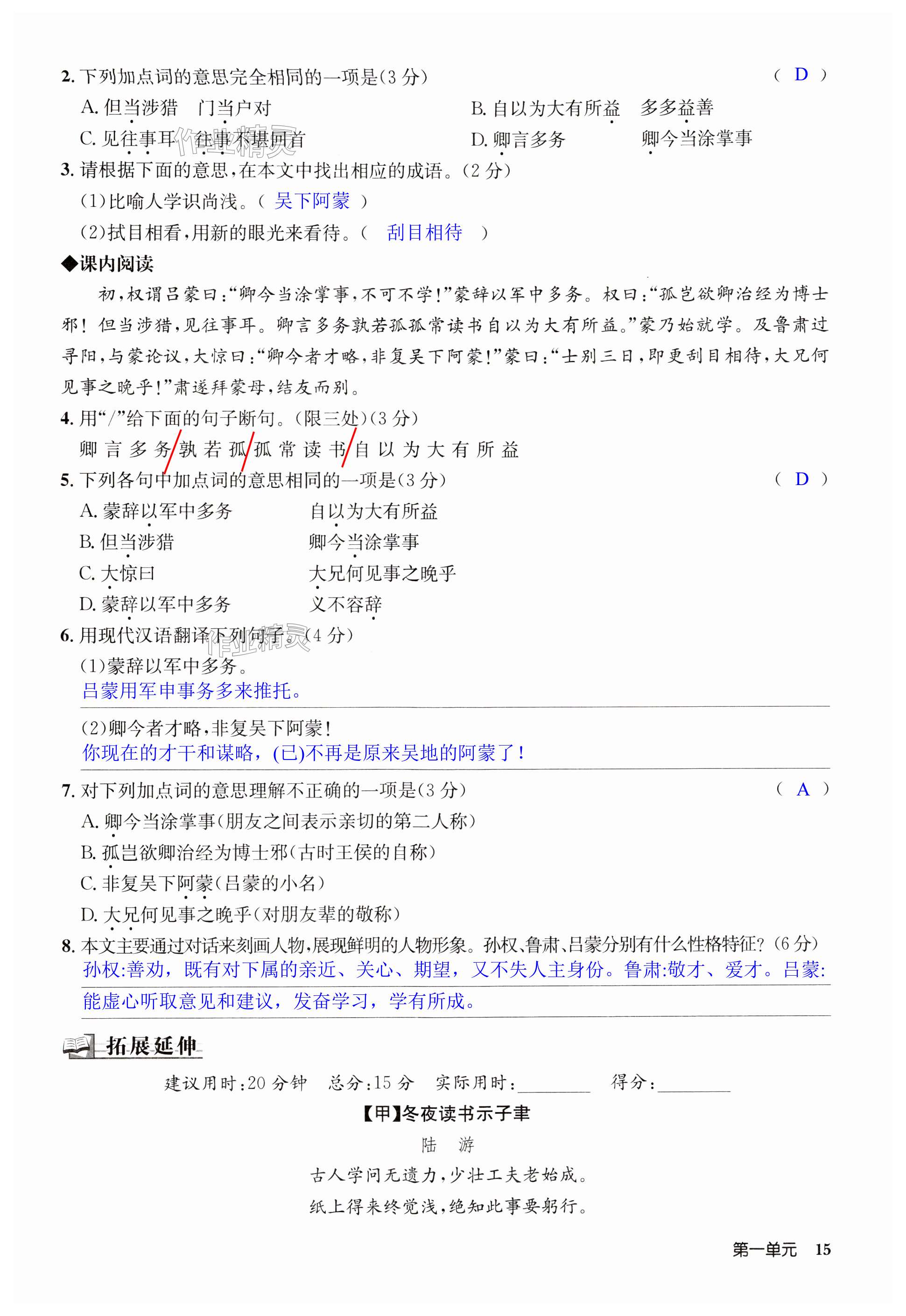 注:目前有些书本章节名称可能整理的还不是很完善,但都是按照顺序排列的,请同学们按照顺序仔细查找。练习册 2024年启东中学作业本七年级语文下册人教版宿迁专版 答案主要是用来给同学们做完题方便对答案用的,请勿直接抄袭。