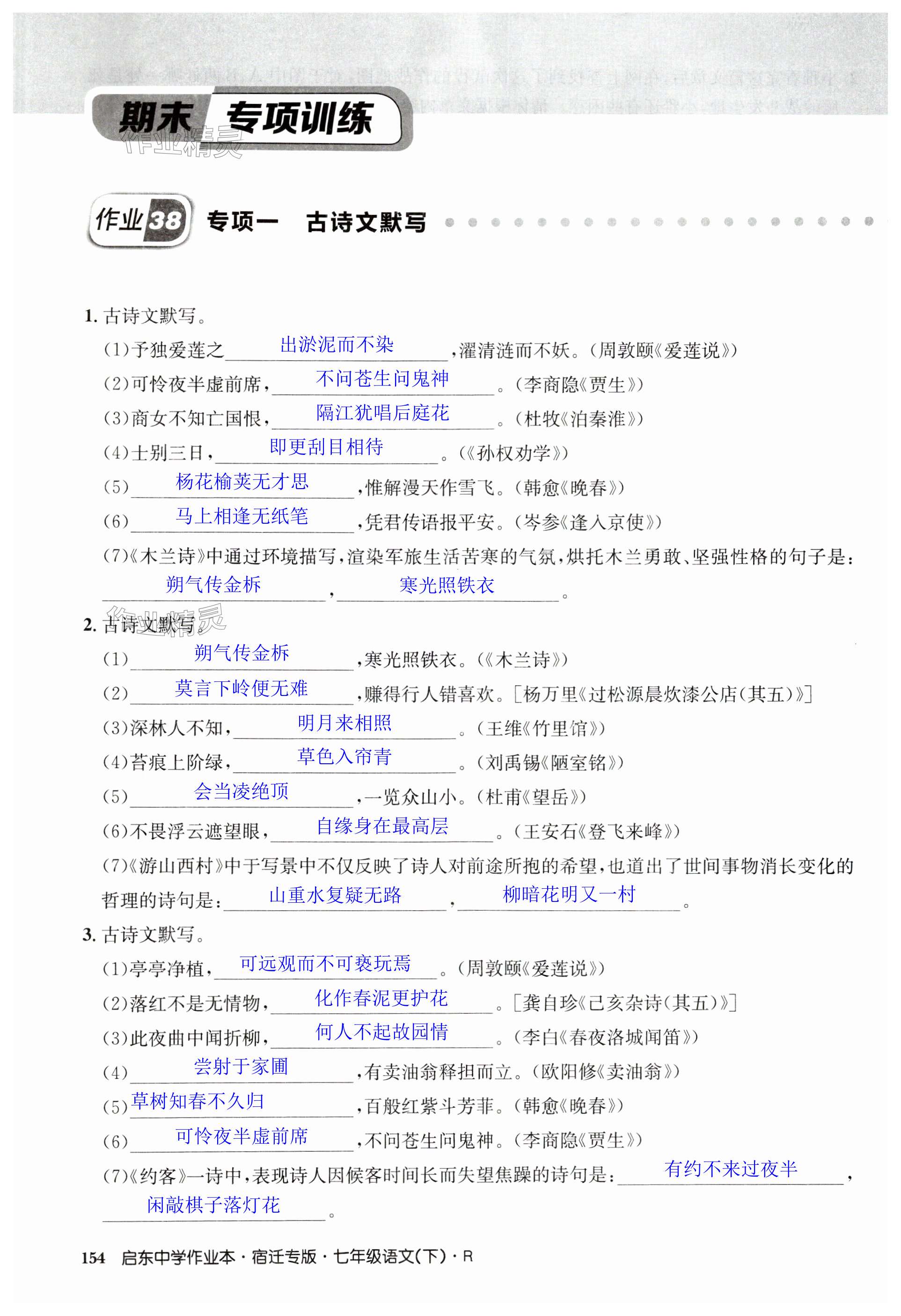 《2024年启东中学作业本七年级语文下册人教版宿迁专版》