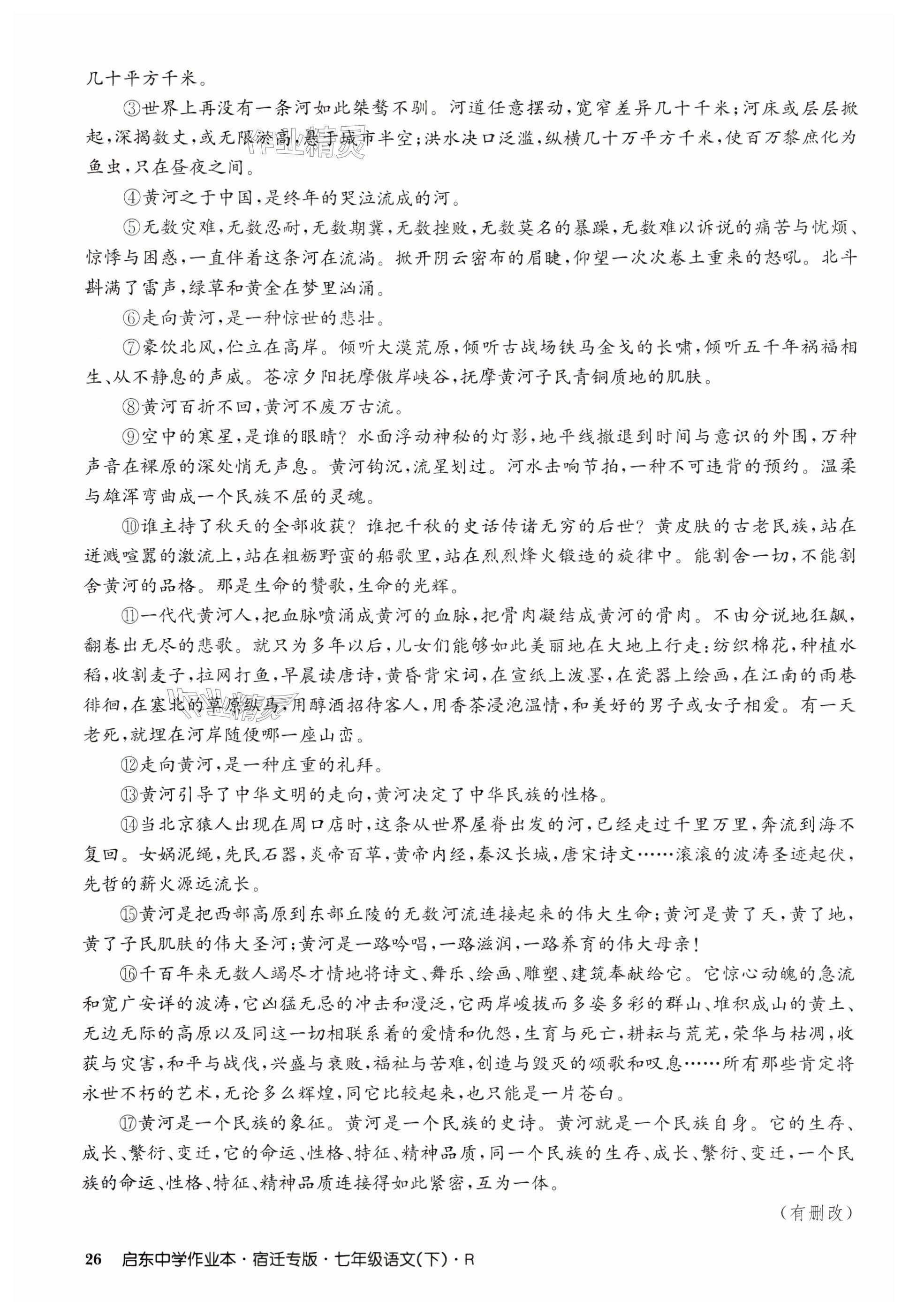 《2024年启东中学作业本七年级语文下册人教版宿迁专版》