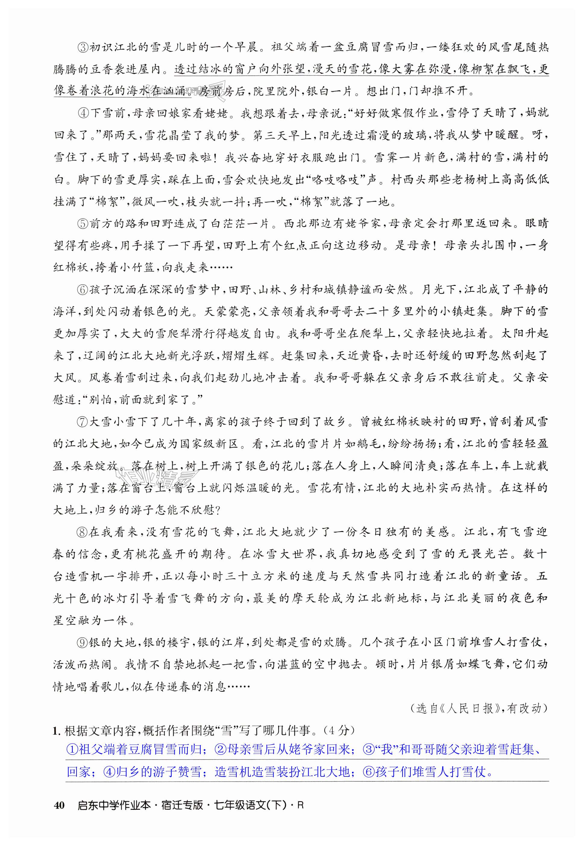 《2024年启东中学作业本七年级语文下册人教版宿迁专版》