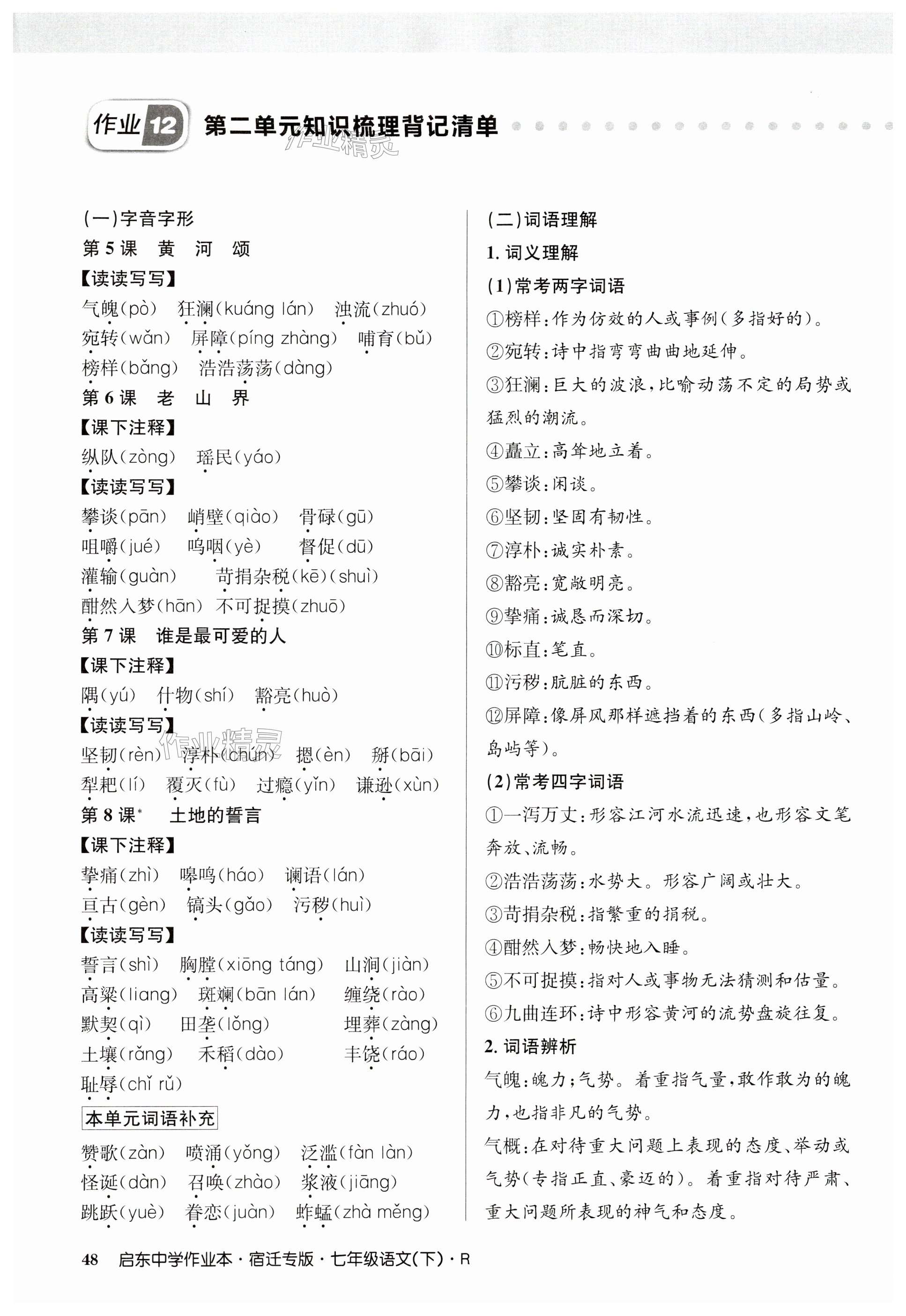 注:目前有些书本章节名称可能整理的还不是很完善,但都是按照顺序排列的,请同学们按照顺序仔细查找。练习册 2024年启东中学作业本七年级语文下册人教版宿迁专版 答案主要是用来给同学们做完题方便对答案用的,请勿直接抄袭。